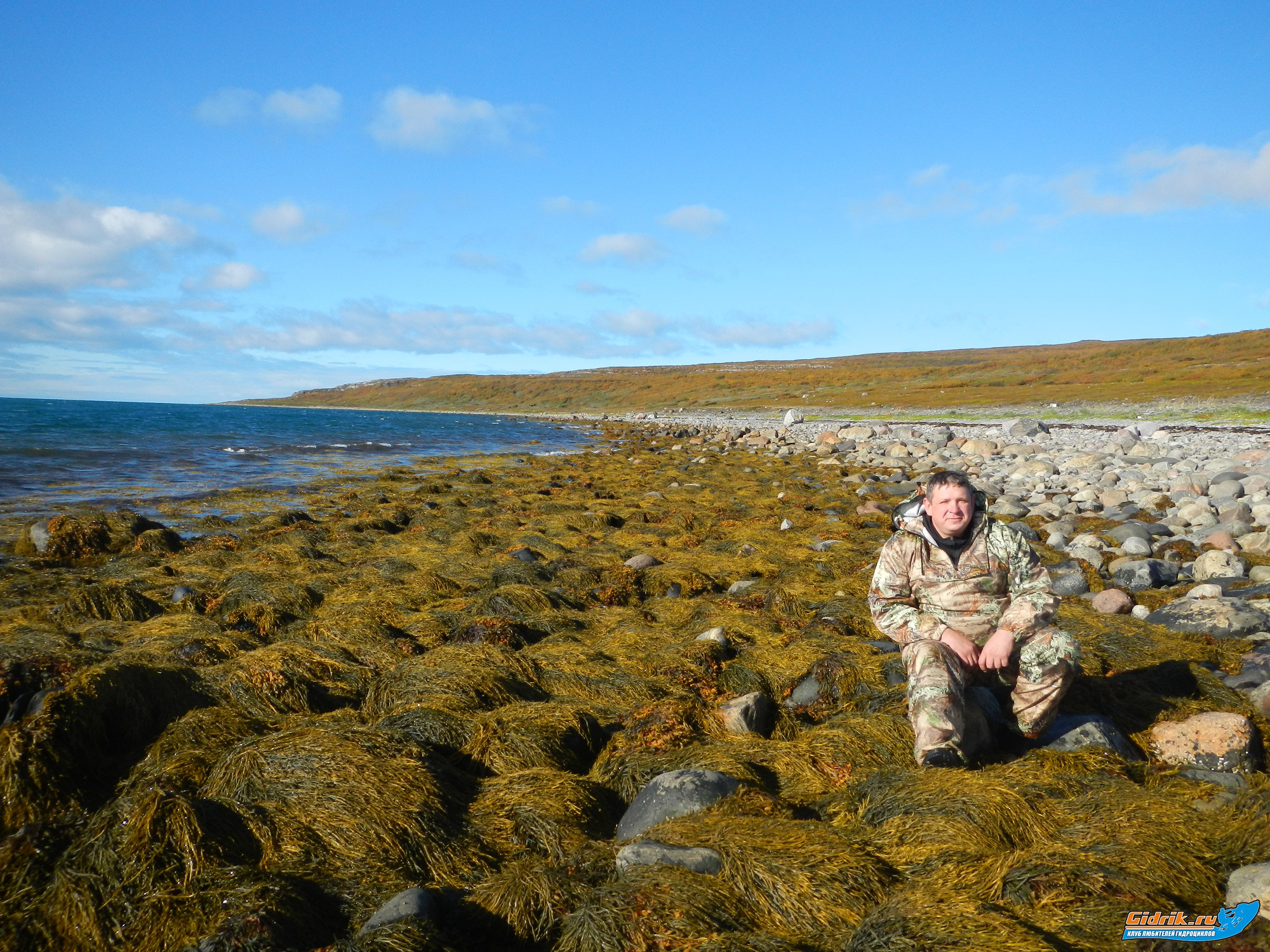 Мы же, после того, как проводили парней, потихоньку двинулись дальше. Хоть погода и не позволяла, но было стойкое желание очередной раз занырнуть в Баренцуху (всю подводную амуницию, все эти три дня мы брали с собой) даже несмотря на то, что пришлось делать лишний, круг в 10 км. Прибыв на побережье бухты, мы шустро переоделись и начали исследовать подводную флору и фауну. Те, кто остался на берегу, наблюдали интересную картину: примерно в 100 метрах от нашего ныряния, куча чаек, периодически камнем падали в воду и взлетали с рыбой в клюве. В том месте, где это происходило, вода как будто кипела, от обилия рыбы. Это рыбой оказалась сельдь. Как потом выяснилось, выплыть на поверхность рыбу, заставила касатка, которая периодически появлялась на поверхности. Мы, поныряв с часок, и захватив с собой со дна пару сувениров, вернулись на берег. Погода совсем испортилась, температура была около 4 градусов, шёл дождь, периодически сменяясь на снег. Я, подумав, что смысла нет под таким дождём переодеваться , не снимая гидрокостюм, сверху одел ветровку и мы двинулись в обратный путь на базу. Сказать, что я совсем не замёрз, не могу, но в принципе терпимо. Через полтора часа, прибыв на базу, я отогревался под горячим душем. Вот так закончилось наше трёхдневное путешествие, по красивейшим местам Кольского полуострова. Поздним воскресным вечером, мы вернулись в Мурманск, в гостиницу. Т.к. наш вылет был только вечером, в понедельник, мы днём заказали обзорную экскурсию по Городу-Герою. Перед поездкой в аэропорт, заехали к нашим друзьям в «Газ до отказа». В этот день, у Мурманского Олега (Ети) было день рождение. Поздравив его и попрощавшись с ребятами, работающими в этой замечательной и дружной компании, мы, полные впечатлений , эмоций и тоской от расставания уехали, чтобы опять вернуться!