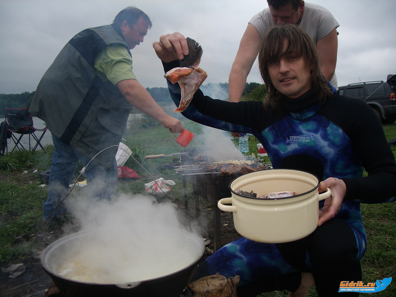 Через часик приехал Андрюха (Andman) с неотъемлемой частью ПРАВИЛЬНОЙ ухи - чистым, питьевым спиртом. А потом ещё куча народу, судя по всему , на запах варившейся ухи. В итоге, небольшой экспромт, в виде ловли раков перешел, в грандиозный пикник с шатром, шашлыком, раками, спиртом и девочками.
