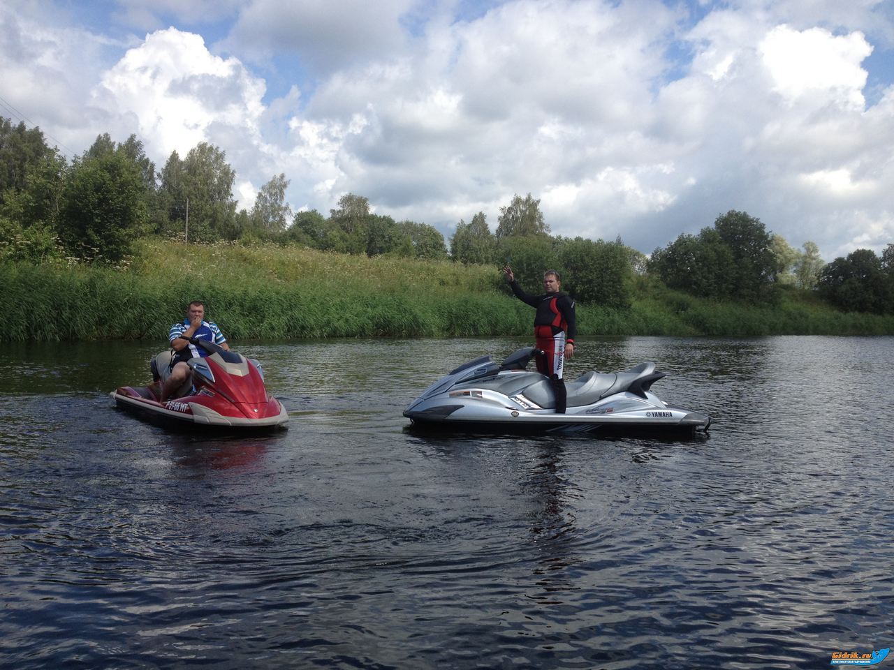 На следующий день, мы втроём, спустили гидры и поехали на встречу, на реку Дубна, где спускал свой гидр Андрей. По воде, это примерно в 10 км. Андрей нам показал, где сливаются две реки: Дубна и Сестра. Мы катанули по этим двум рекам, распугивая рыбаков. Не обошлось без проишествия: ЛЁня, не заметив натянутую леску, лицом поймал её. Обошлось шрамом на пол лица, надеемся, что без последствий, всё заживёт.