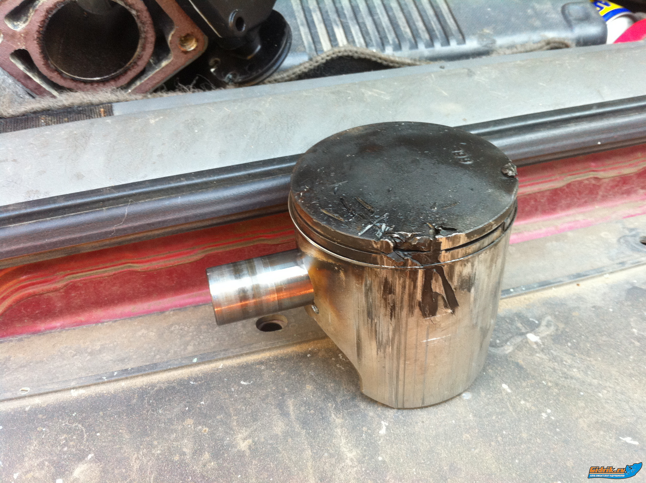 или кольцо верхнее лопнуло, например от перегрева, хотя других признаков перегрева невидно...