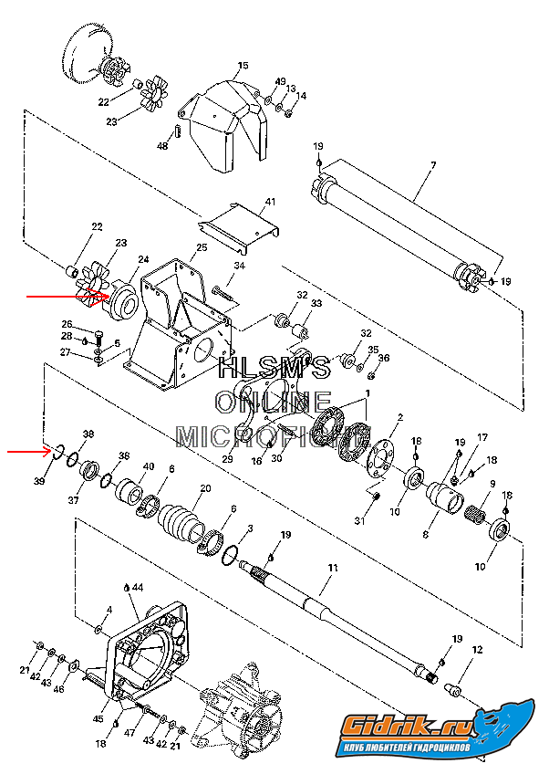 На концевала, удерживая крестовину. Которую надо снять чтоб заменить подшипник номер 9