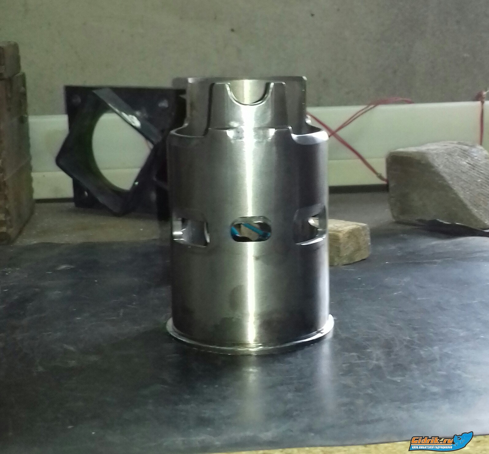 Ну, и вот. Цилиндр пактически готов, осталось дунуть песком сварочные места для однородности поверхности, расточка, шлифовка... верха и покраска. Дальше установка, проверка времени синхронизации портов, доводка головы-(К.Ж.) под желаемую компрессию -топливо. Но это всё потом, когда хз.  Да, сразу говорю - это портирование не из моей головы, полностью с копиковано с професиональных тем созданых на зарубежных ворумах ведущими строителями моторов!!! Как это получилось у меня,- на воде покажет