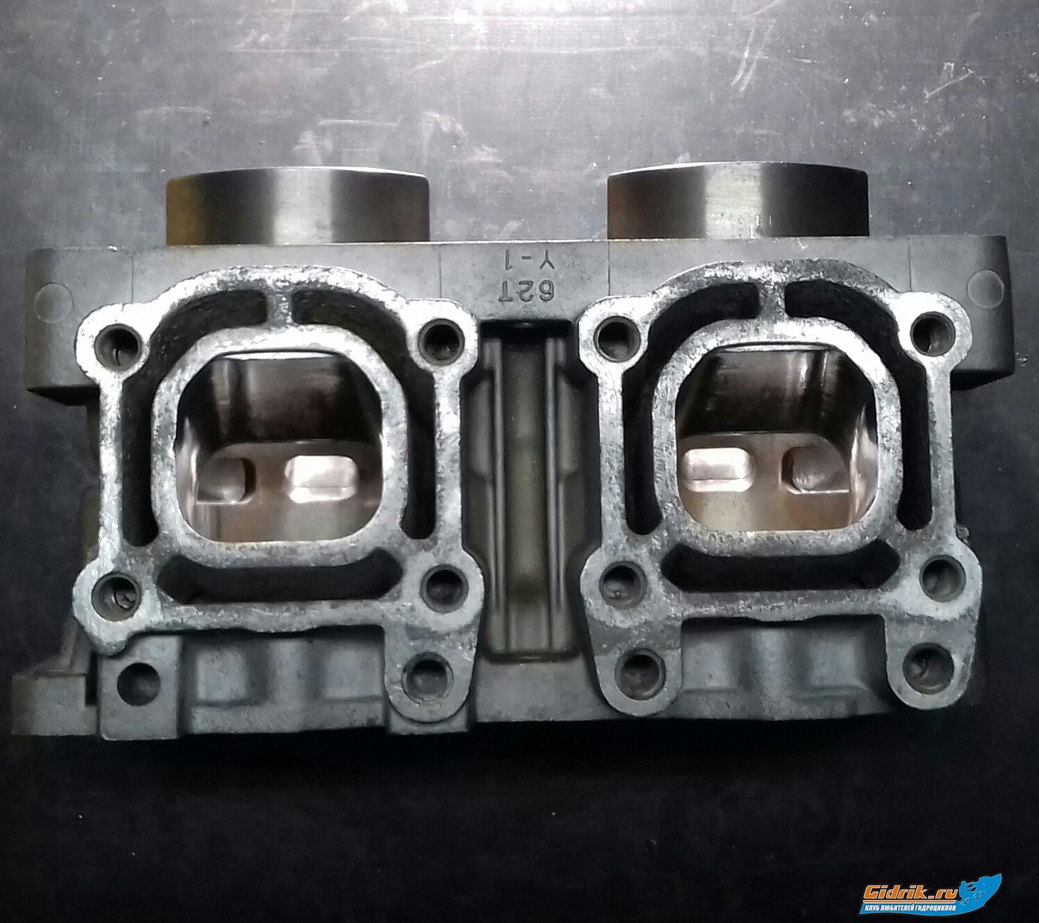 Блок готов! Для работы с низом юбки гильзы нужно обратно установить и произвести разметку уже согласнл сформированых каналов передач. Не обязательно иметь шаблоны портирования, нужна цифы и ниглядные для понятия фото))). Для разметки, если нет слесарного миниугольника, я использовал как за эталон подвижную часть от штангенциркуля Разметку делаем как на впуске так и на тыл юбки. Так же отметки наносим на гильзе в вех по краям трансканалов.