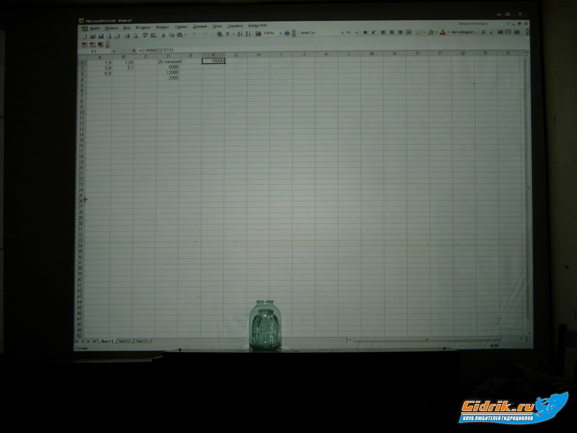 4. Проектор - acer x1260 - разрешение на экране програмное 1280х1024 - покупал давно, за смешные на то время 15.000р, уже отпахал 3900 часов, на чем лампа успешно и 3,14зданула, как раз когда я в выхи сел кено зыреть :( Лампа с ебея от китаезы приехала за 2 недели так что он снова в бою :) но в будующем посоветую FULL-HD-ready или хотябы HD ready ибо контент с торентов зачастую можно достать в хороших ШД...