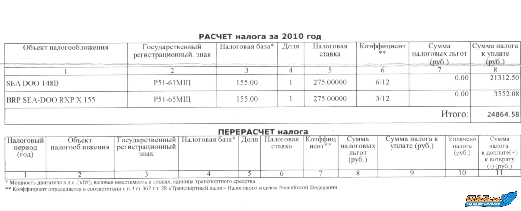 ребят с гидриками все понятно...проще неставить...я за прошлый сезон только получил бумажку штрафа на 500 рублей от инспектора в строгино когда там рейд какой то был.. да ито за то что на гидраче небыл номер нарисован...сам виноват  а вот такой вопрос! я тут купил себе катер осенью в нем 300 кобыл вот гадаю как с налогами на него? каждый говорит по разному ...что типа считается на все моторы и на стационары и на подвесняки и на гидрике единая ставка ...в интернете нашел что на гидроциклы одна ставка а на катера другая....как то неясно...может сталкивался кто?