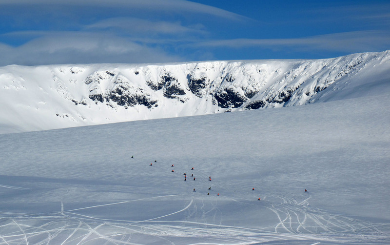 11-00 выезд на маршрут Тирвас – г. Тахтарпорр и далее цирк Бастиона, пер.Рамзай и цирк Петрелиуса. Работа на склонах, основные навыки движения вверх-вниз, маневрирования, застревания и освобождения. Навыки работы с противолавинным и поисковым снаряжением в реальных условиях.