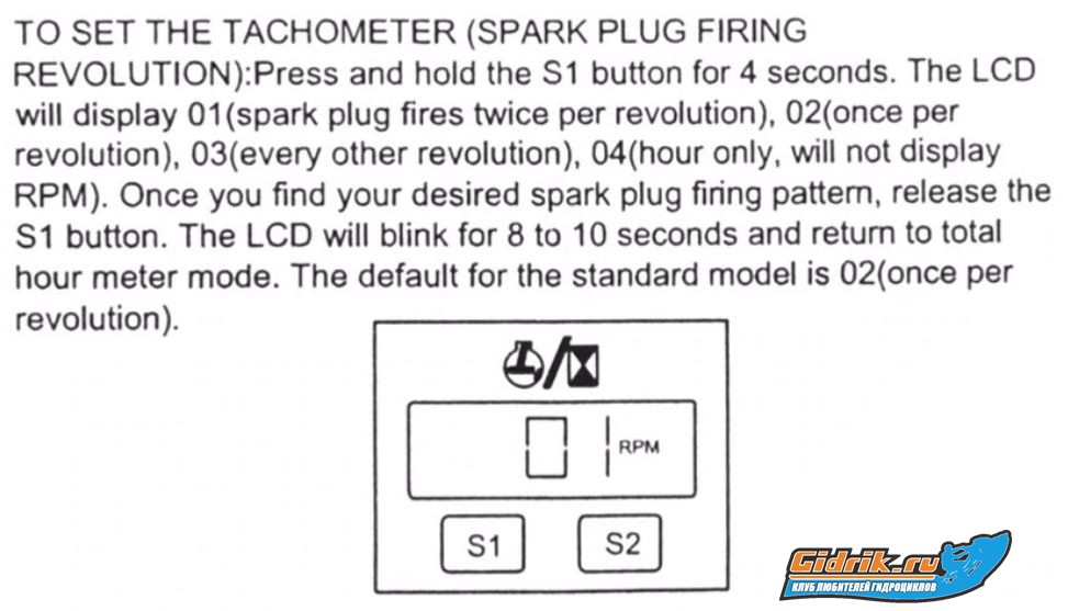 Если тахометр такой http://aliexpress.ru/item/33053156503.htmlТо да, режим 1 это когда две искры на один оборот, то есть искра каждые полоборота. Это двухцилиндровый двухтактный мотор, либо четырехцилиндровый четырехтактный с трамблером и подключением тахометра на центральный высоковольтный провод от общей катушки. Режим 3 - это одна искра каждые два оборота, то есть одноцилиндровый четырехтактный мотор, например маленький ПЛМ или питбайк Режим 2 это одна искра на каждый оборот, это двухцилиндровый четырехтактный мотор с двухвыводной катушкой или с холостой искрой
