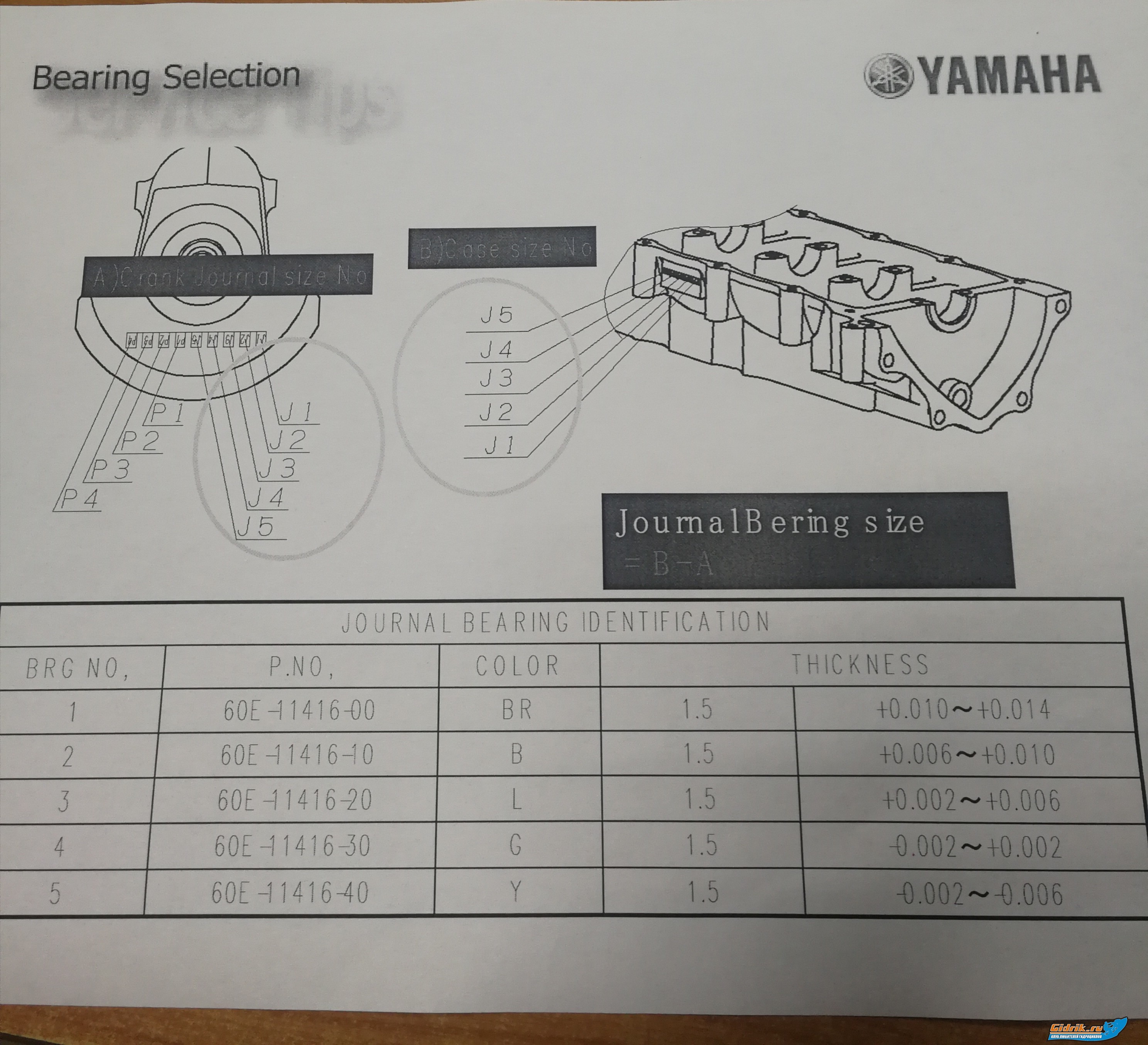Всем привет.Собрался капиталить движок.Вкладыши, как известно, подбирают по цветам,есть формула в мануале.Но не всегда работает.До этого капиталил такую же машину.Вроде все по мануалу вычислил с механиком,по шатунам все ОК,все в цвет.А по коренным цвета не бьют,проверяли пластигейджем.Понадобились вкладыши чуть толще. Подбирали методом тыка с замером пластигейджем.Пришлось покупать лишние вкладыши. Ну вроде подобрали,собрали,обкатали, законсервировали,дело было в ноябре,у нас еще более-менее тепло.Вроде все все ок.Как писал выше грядет капиталка второй машины.Вопрос в следующем:какие вкладыши коленвала по цветам толще, а какие тоньше.Повторяю,что по формуле в мануале не всегда попадает в размер зазоров.Все проверяем пластигейджем (хорошая штука) и динамометричеким ключом.Нужно знать толщины по цветам чтобы не попадать на бабки,не покупать кучу вкладышей для подбора.Перерыл интернет и наш и буржуйский,нет информации. В БРП там проще,не заморачиваются по цветам. Гидрик Ямаха FX 1100.Буду благодарен за информацию.