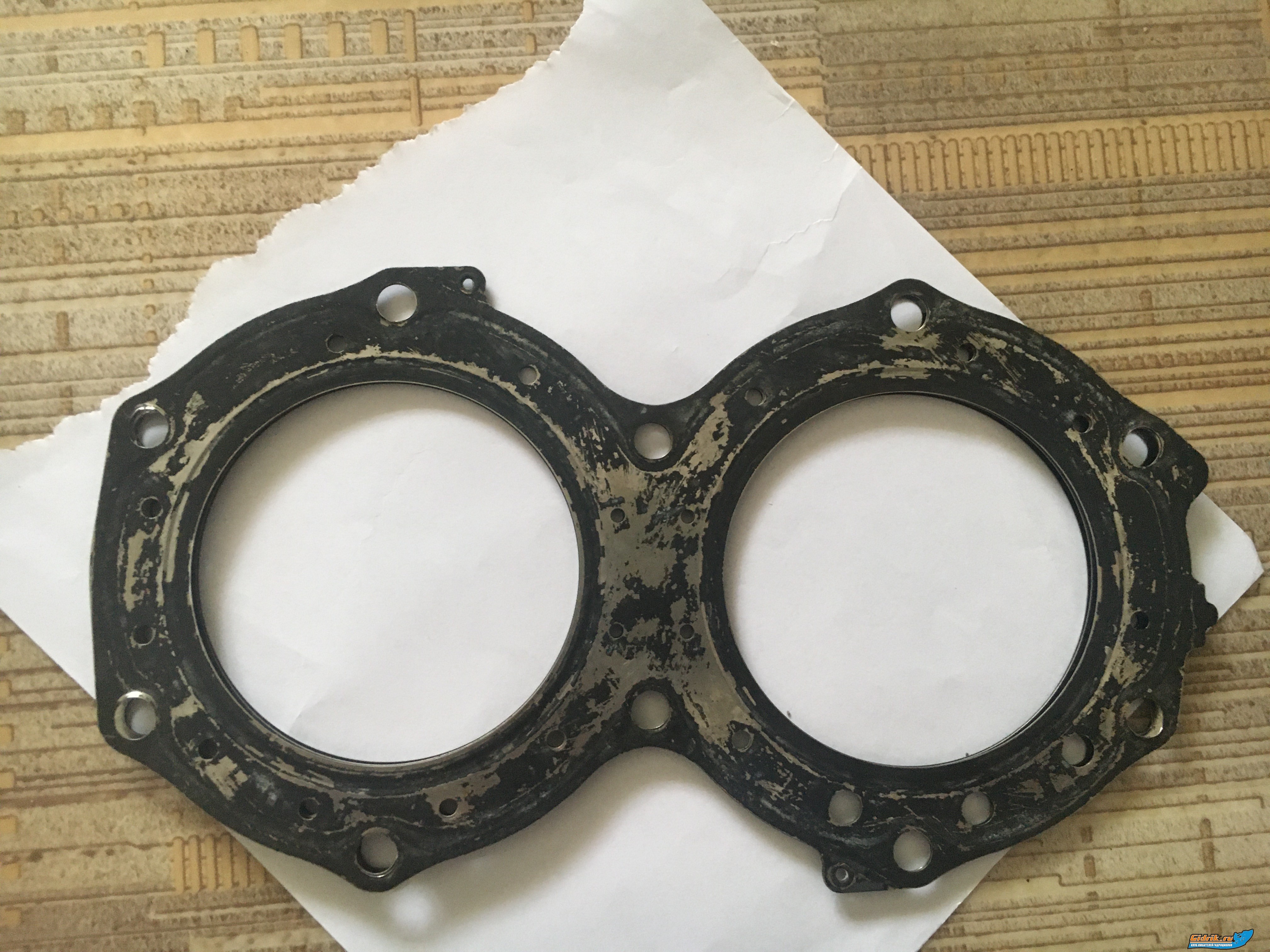 Смотри внимательно, на прокладке на заднем цилиндре нет одного отверстия и так же в голове нет канала между 9-10 болта ( он глухой) связывающкго с ОЖ. в прокладке на заднем... отверстие перенесено между 5-9 болтов, большим диаметром 3и отверстия состороны карбов.