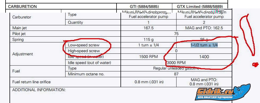 petrycho писал(а): ttommik писал(а): petrycho писал(а): 1:50 нормально. Дай ссылку на свой мануал и мы посмотрим что и как http://seadoomanuals.net/manuals/1999-s ... manual.phpОтвет на картинке:  Ребят подниму старую темку.На фото из мануала видно что винт высоких оборотов 0.Это что значит?Закручен должен быть до упора?Я катал с настройками 1,5 на 1,5.Зависит ли положение винта Н после расточки цилиндров на следующий ремонт?
