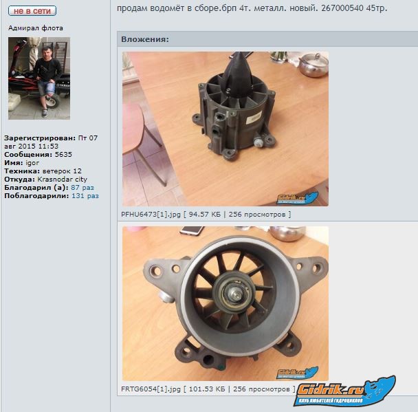 petrycho писал(а): 694Роман писал(а): igor sea-doo писал(а): а в чём проблема в итоге?подшип.купить? Проблема в том что надо менять спрямляющий он тоже дефлрмирован. Сейчас собрал как есть, отката сезон. Набери или чиркни сюда 89104279938, и спроси все то, что душу гложет. Если у неё будет то, что нужно, то отпиши или отзвони мне на 89102507343. Мы дом водомета у неё забрали за 4 тыра, всего то.... Спс