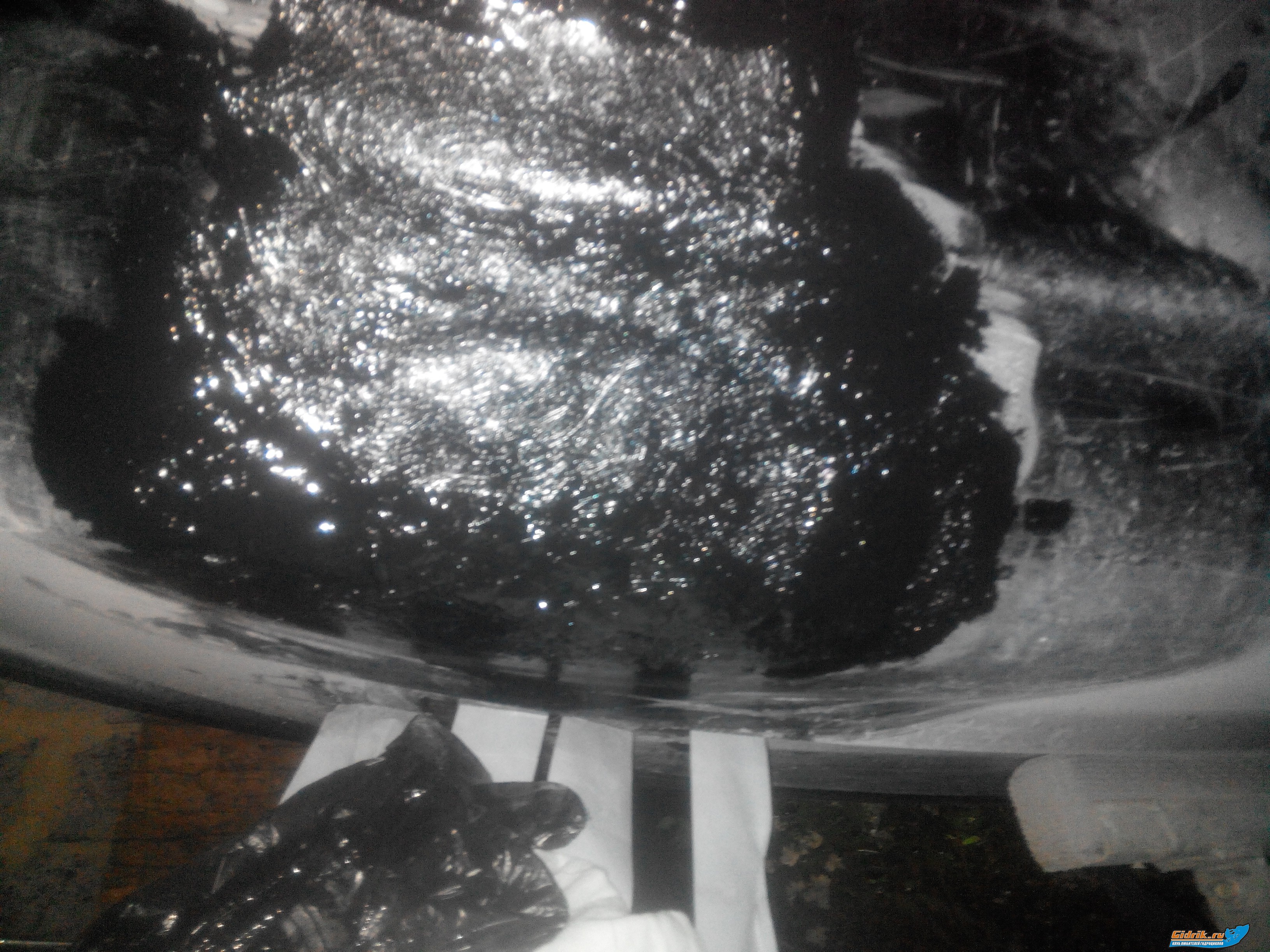 В ЦЕНТРЕ ЭТО ДЫРА , просто стеклоткани нет это пенополиэстирол видно , а вокруг всё зачищено чтоб к центру дыры стеклоткань корпуса становилась тоньше