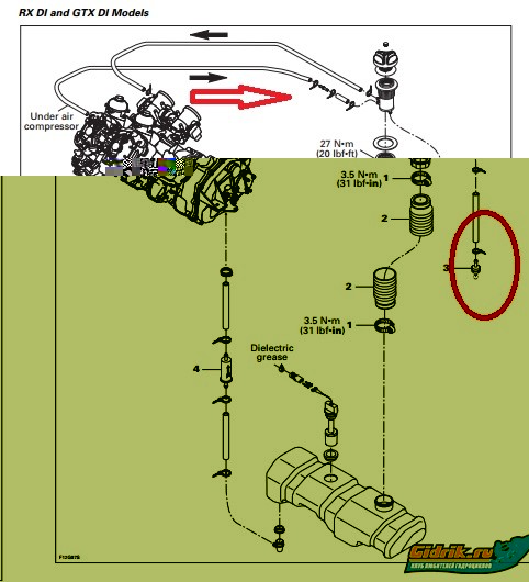 трубка 4 на 4м рисунке идет под движком и втыкается в воздушный фильтр, вернее в черную планку между дросселей, там есть штекер, тут видно http://oem.moto-all.ru/brand/brp/sea-do ... ystem.html (трубка 43)