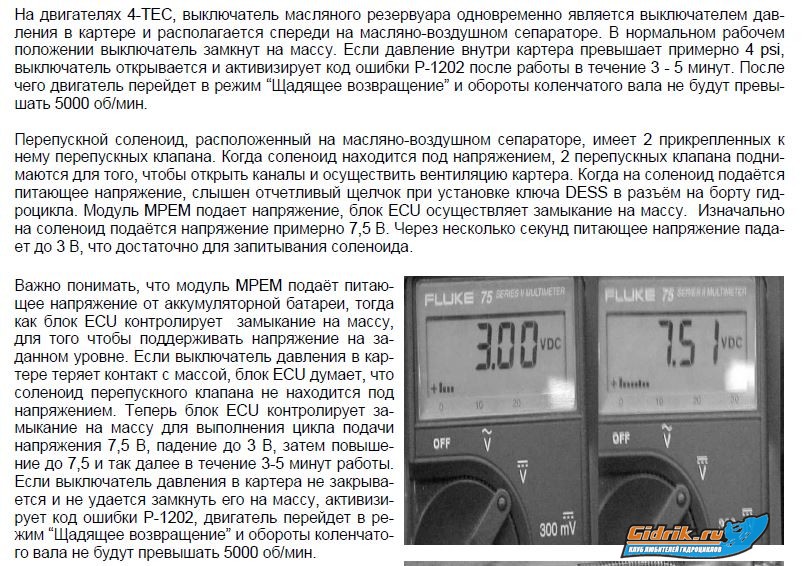 Юра спасибо, вселил надежду). Видит гидроцикл не могу, вижу его и руки отпускаются. Столько всего проделано, пройдено. А он не одно так другое вычебучивает. Были подозрения за клапан. На старых мозгах глюк поймал, постоянно бензо насос вклчал и клапан щёлкал, на новых молчит как портизан. Не знаю что думать, Толи блок эбд команду не даёт толи ещё чего. Завтра к доктору повезу, ваш ответ помог, есть на что обратить внимание. Жму руку.