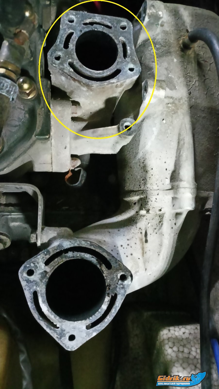 Почему нет отверстий в..., - это 2т мотор с ткрытой системой ОЖ и мощностной сухой трубой, каждая ступень трубы имеет свою температуру в зависимости от оборотов. Вых коллектор готовит темерпатуру воды для блока цилиндров ну и так долее!