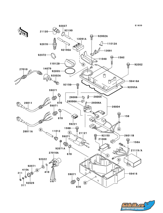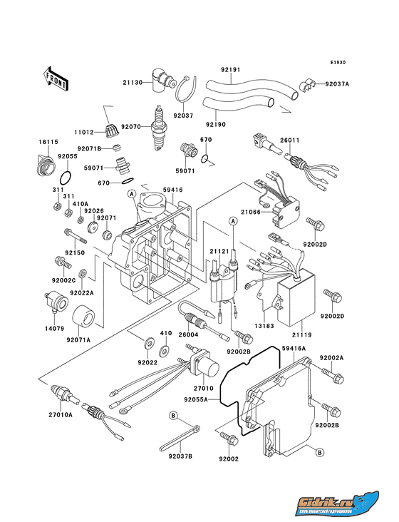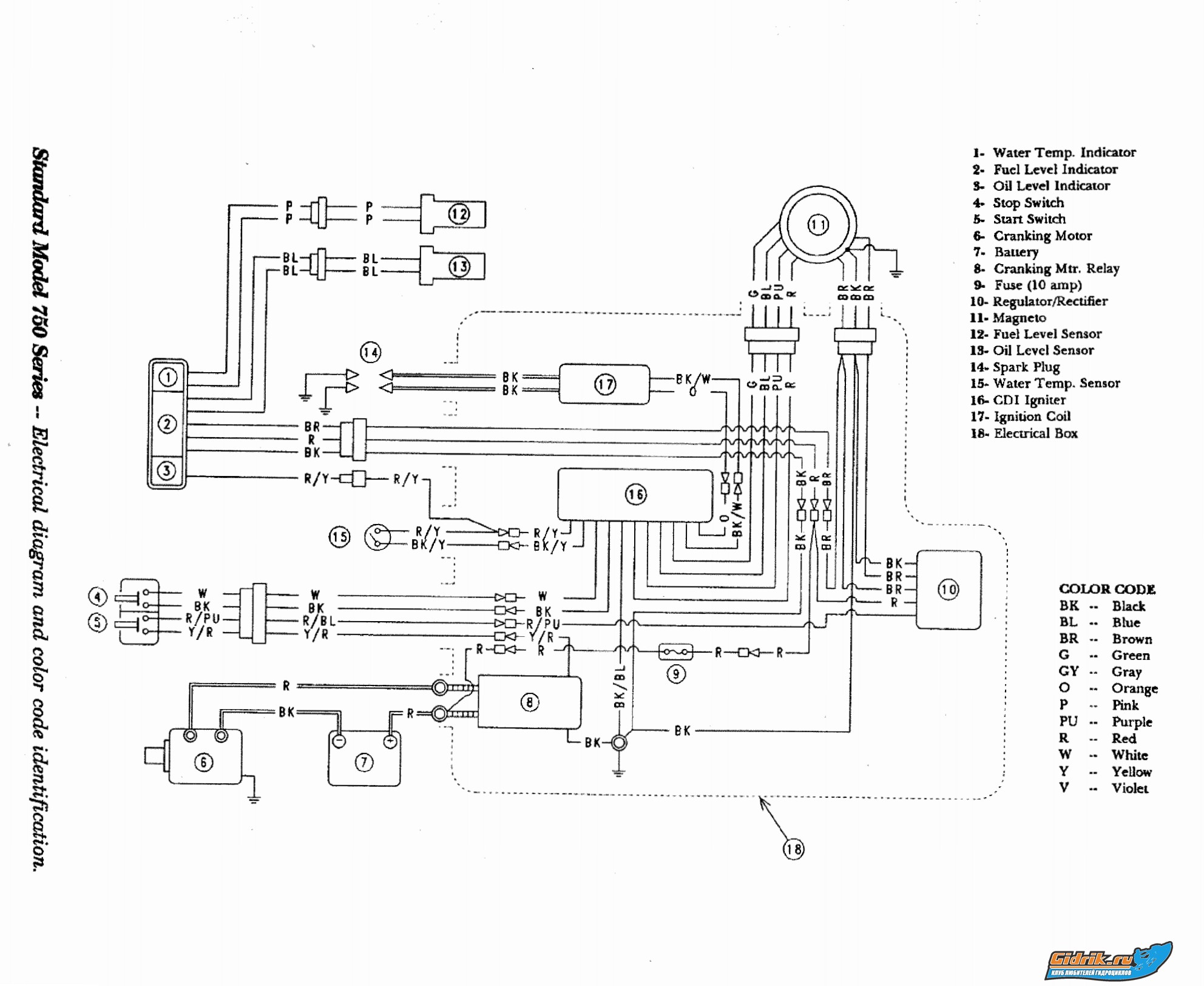softserver писал(а): Если посетило желание убить несколько дней жизни, то мои советы следующие ... 1. Начало ремонта следует начинать с полного восстановления проводки согласно схемы. (Схему прилагаю) По идее схема одна и та же на все JET SKI с объемом 750куб. 2. Обязательно проверить на работоспособность кнопки запуска и остановки. Большое внимание следует уделить именно кнопке остановки так как она может работать не корректно, и может быть одной из причин отсутствия искры. Чистка контактов в помощь 3. Если все таки решили восстановить гидрик до заводского состояния рекомендую приобрести новое магнето (около 100$ на алиэкспресс), иначе в случае неправильной намотки питающих катушек проблема проявит себя снова. (А катушки там мотаются очень тонким проводом с большим количеством витков, риск межвиткового пробоя очень велик)  . 4. Обязательная проверка и чистка герметичных соединений между коммутатором CDI и внешними узлами. 5. Проверка на исправность катушки зажигания. Для этого понадобится мультиметр включенный в режим измерения сопротивления. Первичка катушки (та что от коммутатора - примерно 0.1 Ом.), вторичка - ± 4...5кОм. Вторичку мерить по свечным проводам. 6. Если сопротивление вторички катушки очень высокое или оно вовсе бесконечно - смотреть ВВ провода (особенно в месте соединения их со свечным наконечником). Сопротивления ВВ проводов от вторички катушки и до свечи - ± 0...1Ом. В случае высокого сопротивления проводов искра может быть, но заметно слабее чем должна. 7. В случает тотальной экономии и нежелания ждать месяц магнето, можно задурить японскую технику отсоединившись от питающей катушки и вместо нее подавать питание на блок через высоковольтный DC-AC  ИМЕННО ПОСТОЯНКИ В ПЕРЕМЕНКУ  преобразователь 12-120...180В...(Больше не желательно). Один из выводов высоковольтного преобразователя идет на КОРПУС а второй на CDI коммутатор через высокоскоростной диод (типа FR607) без НИКАКИХ конденсаторов по выходу иначе CDI-коммутатор уйдет в мир иной. ЛАЙФХАК... если в промежутке между аккумулятором и повышающим преобразователем поставить повышающий DC-DC преобразователь с выходным напряжением примерно 16В. и преобразователь 12-120...180В настроить на корректную работу при таком входном напряжении...можно добиться равномерной искры даже на почти дохлом аккумуляторе. 8. К 7 совету дельным дополнением может быть проверка работоспособности новой колхозной системы на скутеровском коммутаторе так как он дешевый (2,5$ у нас) и только в случае нормальной работоспособности подключать оригинальный CDI. По окончанию желаю удачи, терпения и заряженного аккумулятора для тестов   ОГРОМНОЕ СПАСИБО ЗА СТАТЬЮ! Приступаю вновь к работе! Что сделано! Куплен полностью блок от kawasaki 750 тока предыдущего года. Поменяна: катушка, ВВ, в общем почти все. потому что корпуса у блоков разные и исполнительные элементы некоторые тоже разные (типа коммутатора).... работоспособность кнопки запуска и остановки полностью почищена. рабочая 100% Установлен новый аккум. Теперь с катушки на выходе 67В. думаю этого будет достаточно. По мануалу от 75-100 на выходе с катушки должно быть (где то тут прочитал на форуме) Обязательная проверка и чистка герметичных соединений между коммутатором CDI и внешними узлами. - сделано Катушка проверена - все ок. заводить не пробовал так как встала проблема в 2-х лишних проводах в моей те