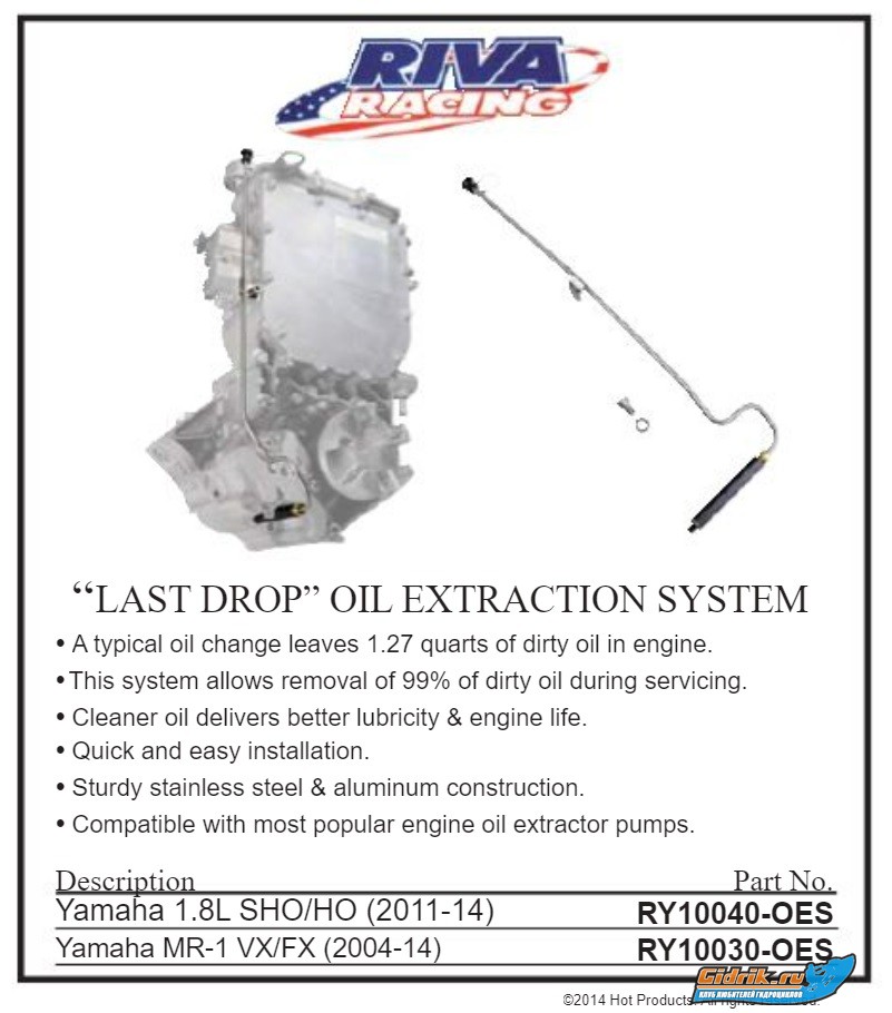 Производство США Riva Racing RY10030-OES / MWV-RY100-30-14 OIL EXT KT (MR-1) VX, Yamaha