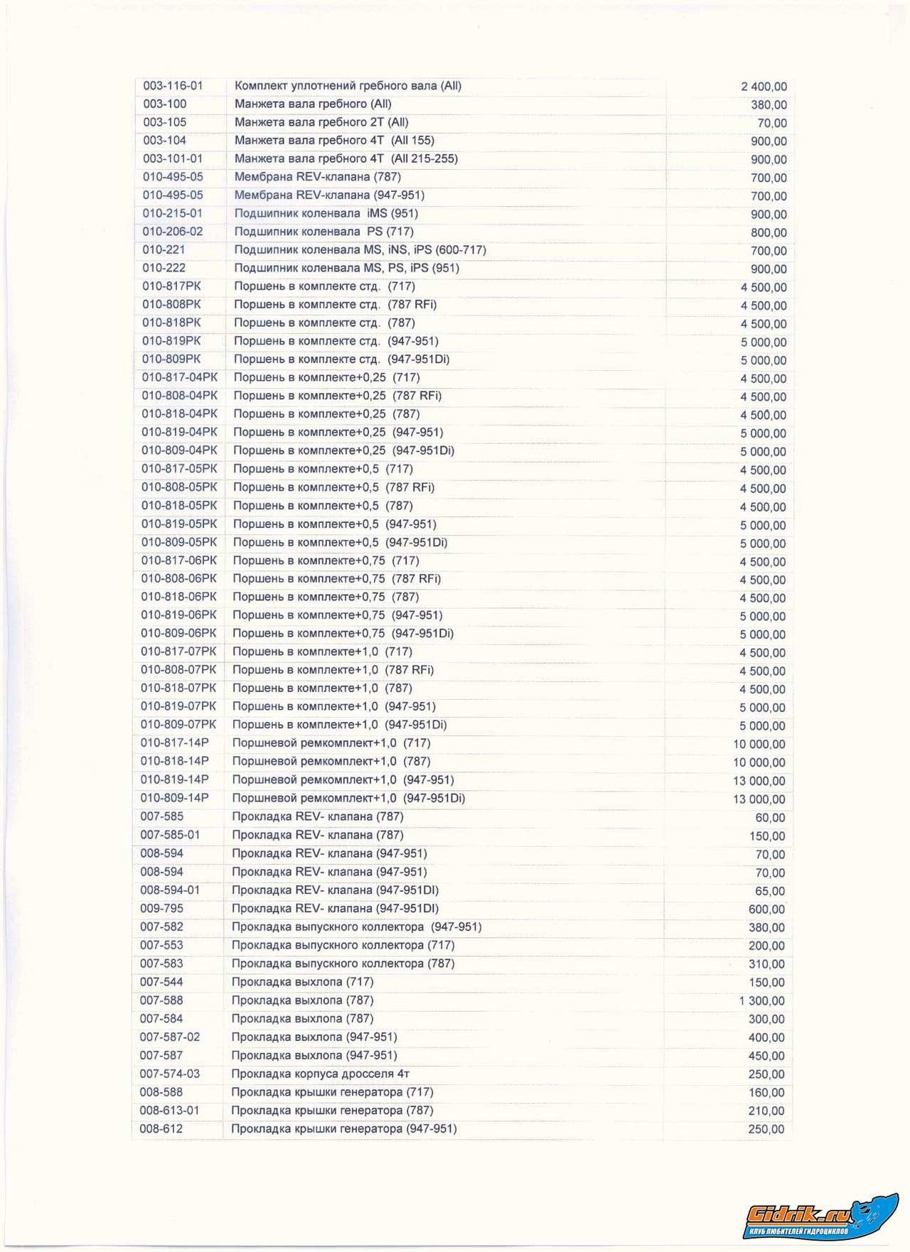 fedor058";p="40447 писал(а): Здравствуйте!!! На Ямаху GP-1300 есть прокладки двигателя в наличии??
