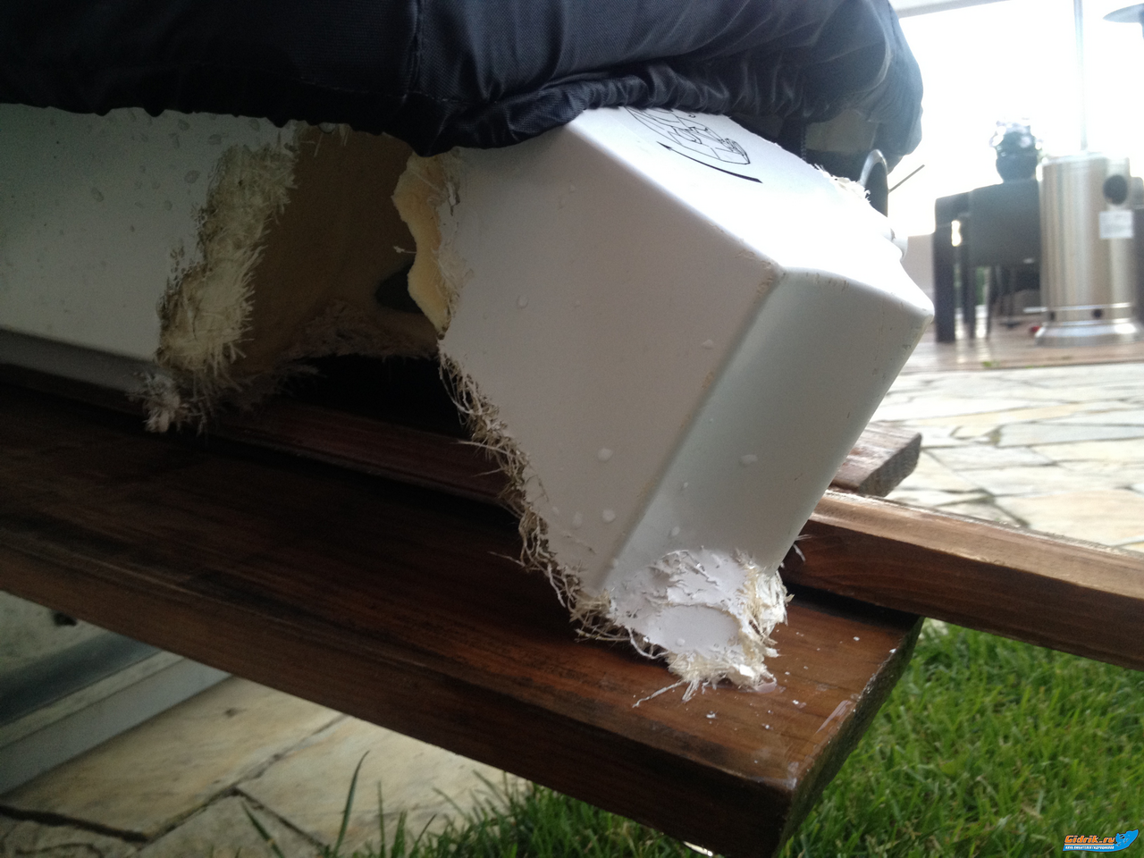 Отломал кусок днища,