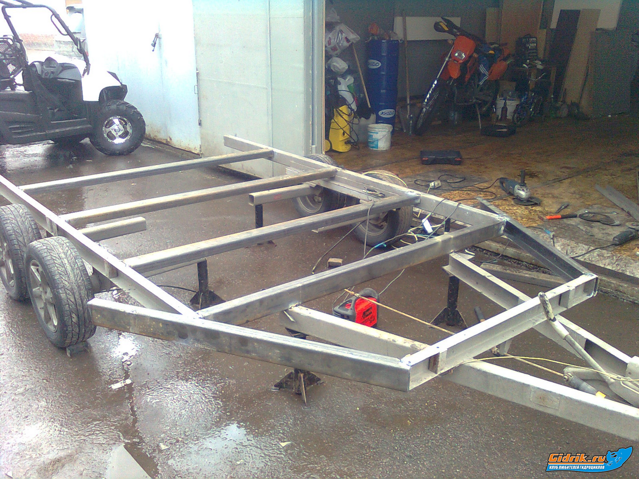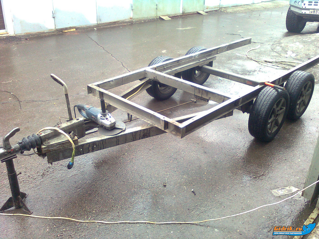 Да закупленны рессоры от москвича, крепеж точат уже токаря на заводе, появилоь упорное колесо от оригинальной тележки, появилась лебедка, нуждающаяся в ремонте. Закуплена какаято хитровые.... пластиковая краска.