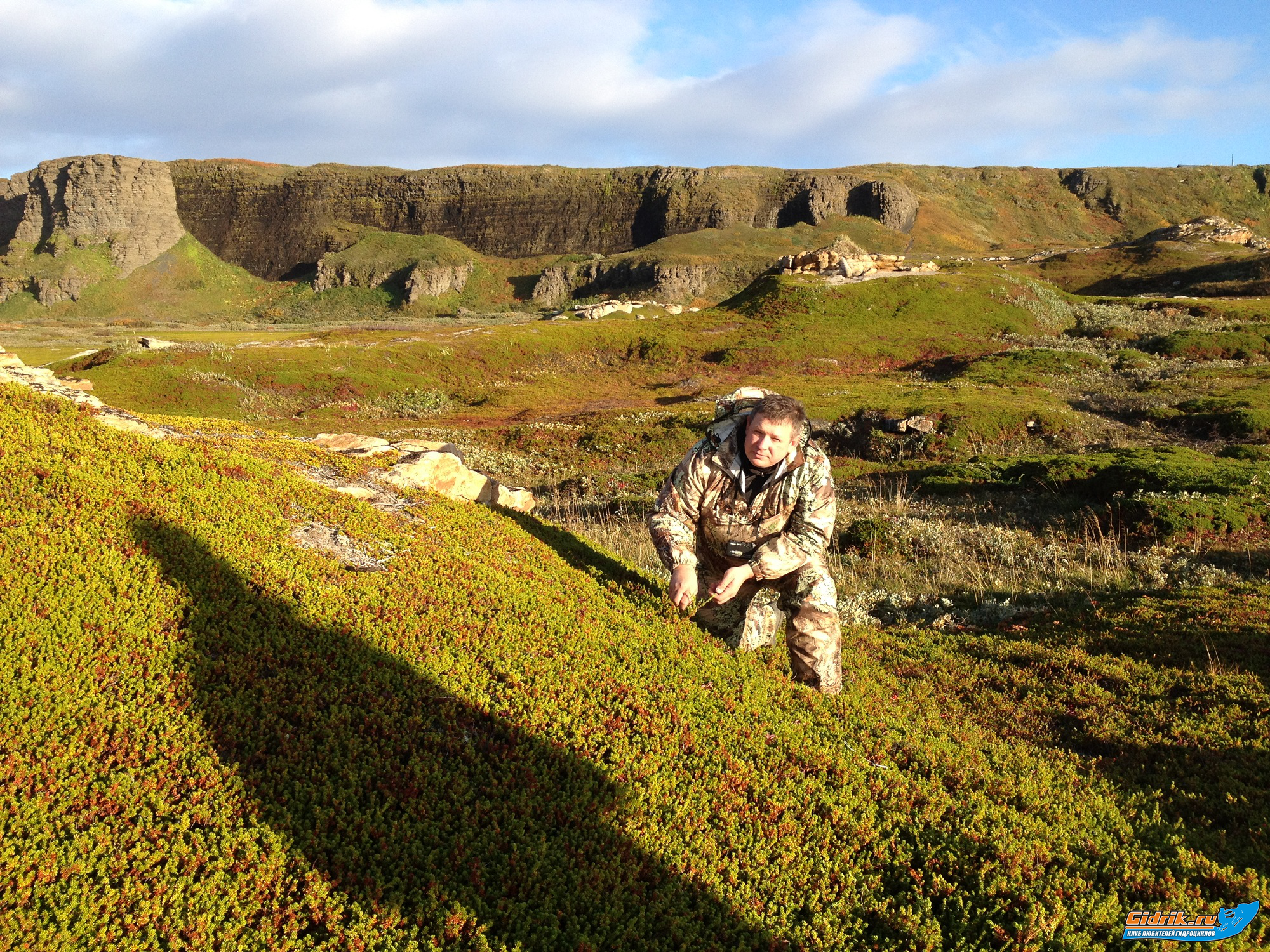 Потихоньку подходил вечер, мы стали спускаться. У нас не обошлось без происшествия. На очередном крутом спуске, квадр Олега Московского, стал заваливаться. Хорошая реакция спасла Олежку от серьёзных травм. Он вовремя спрыгнул вниз, а следом за ним стал падать и переворачиваться квадр, прямо на Олега. Сказалась хорошая физическая форма, ну и конечно армейская подготовка, Олег оказался быстрее. Лимитовый Аутлендер, перевернувшись три раза, остановился. Ни одной царапины! Помог густой ягель и мох. Ещё одно происшествие задержало нас где-то на час. Спустившись с сопок и двигаясь по дороге, мы увидели посередине огромной лужи, стоявший Аутлендер, но не Канадский, а Японский. Как вы уже догадались, это был Мицубиси Аутлендер, наполовину стоявший в воде. Оказалось, девушки, поехали искать своих мужей, которые якобы уехали на рыбалку. То ли мужей долго не было, или жёны решили проверить их улов, короче, очередная лужа стала непреодолимым препятствием. Двигатель нахлебался водички, салон весь в воде и бедные девчонки, мокрые, замёрзшие ждали помощи. Самое главное, что в этой «жопе» не было связи. Совместными усилиями, подцепив трос, двумя квадрами, вытащили машину. Реанимировать её было бесполезно, нужна была эвакуация, поэтому мы записали номер телефона их мужей, чтоб позвонить им, оттуда, где есть связь и сообщить о месте нахождения и рванули дальше.