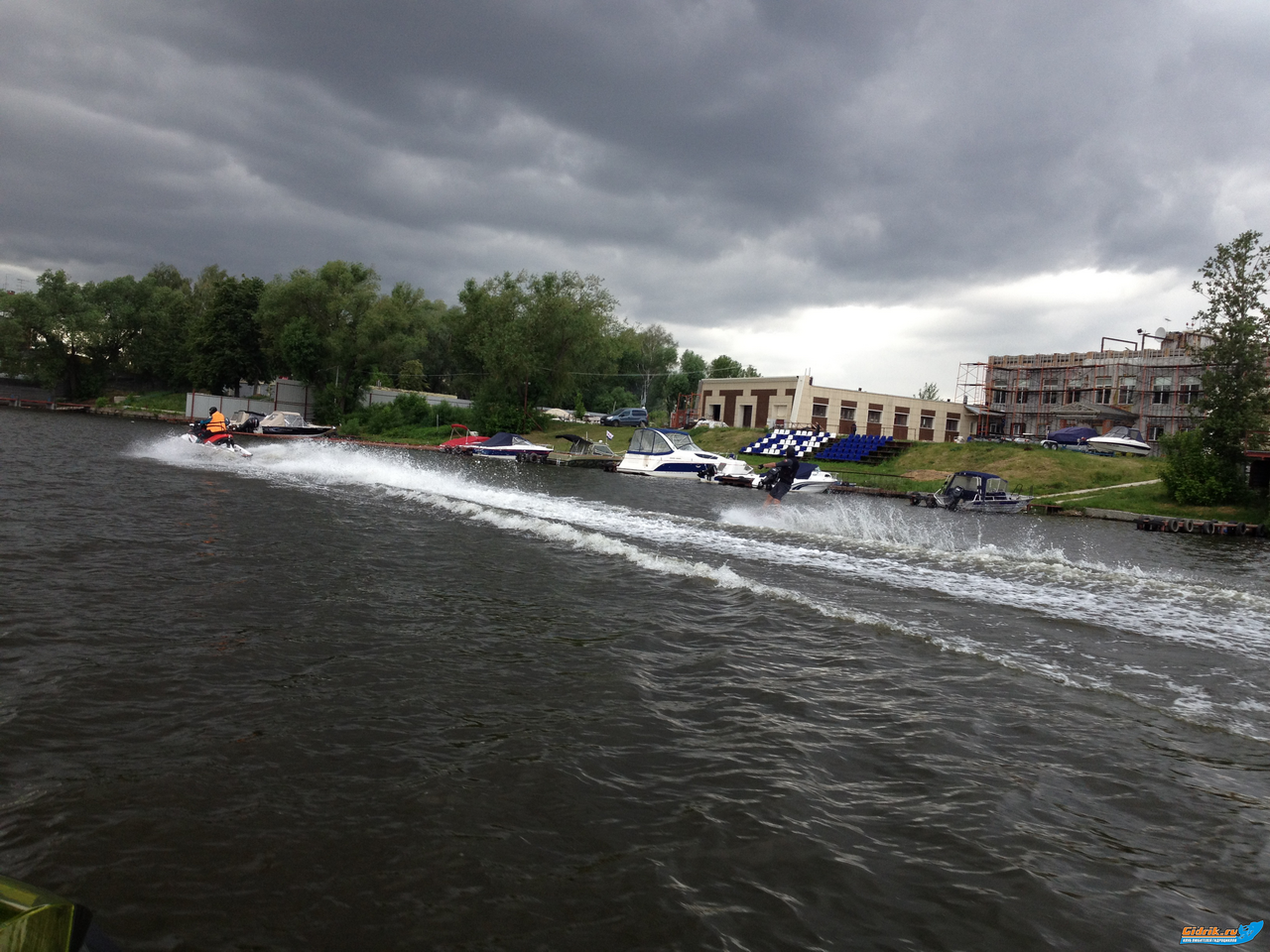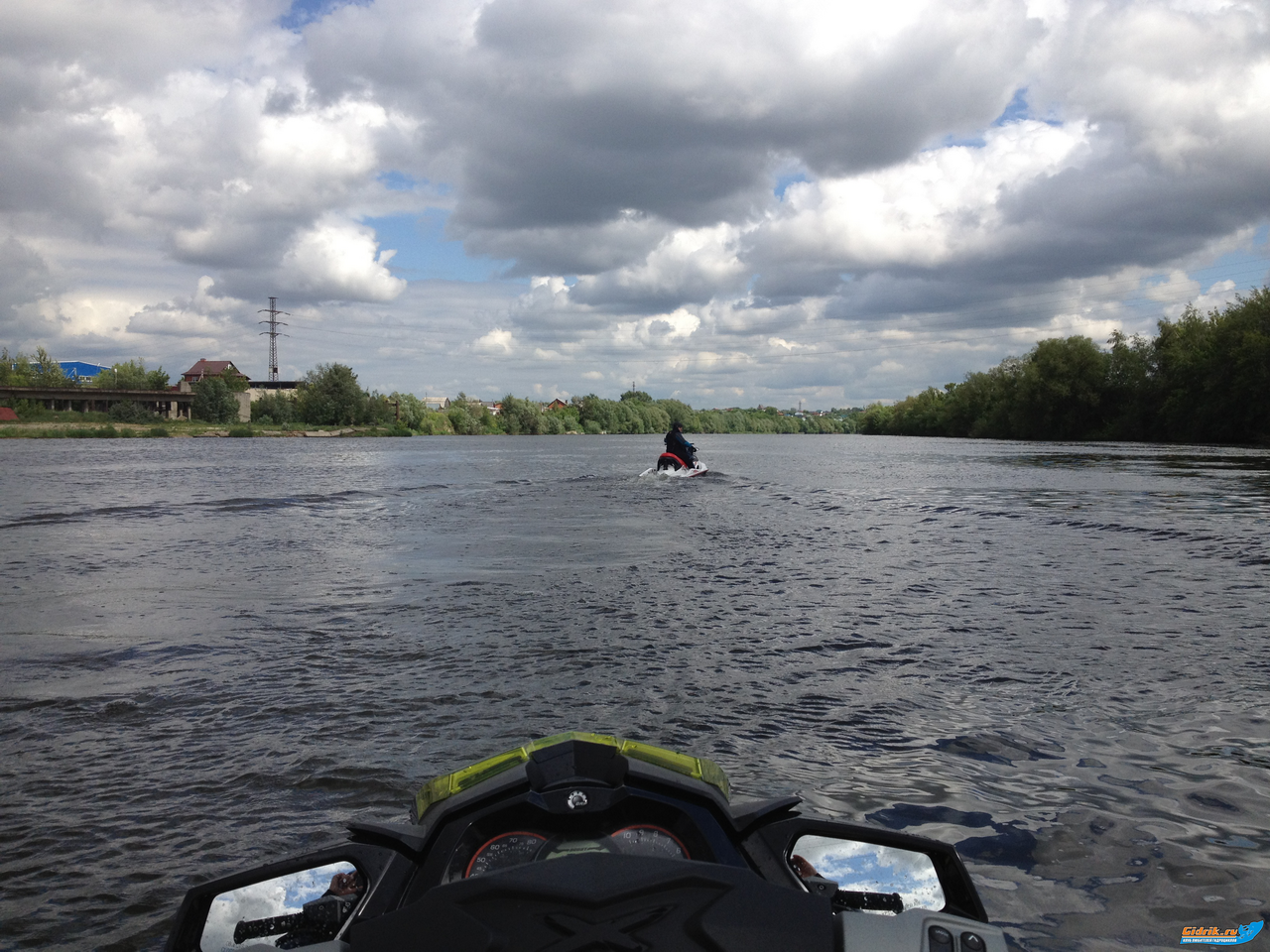 Обкатка продолжается! В среду созвонились со своим старым приятелем, с Ромой Savinsky, которым не виделись уже 3 года (мы с ним в 2009 году начинали обкатывать вместе свои новые гидроциклы, тогда у меня был RXP-X255, а у Ромы RXT 215 WAKE) и в четверг "психанули" на Москва реку, где она вытекает из Москвы. С погодой в принципе повезло, утром был дождик, но ближе к вечеру распогодилось. Под дождь мы всё равно попали, был ливень, но кратковременный.