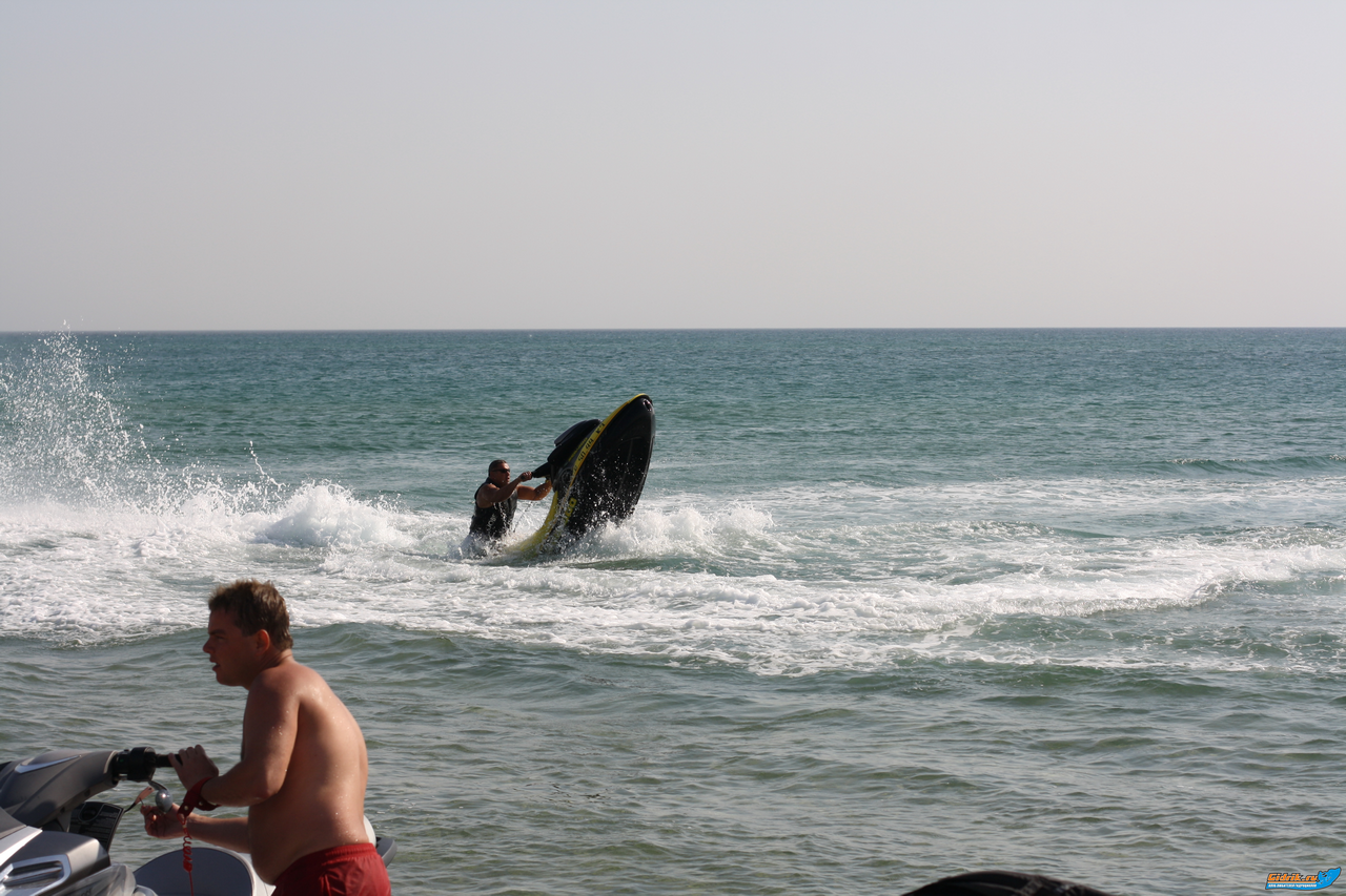 У меня тоже случилось небольшое происшествие: после двух катеров, которые шли параллельным курсом поднялась волна, достаточно большая, и в месте перехлёста этой волны, я решил прыгнуть, в итоге, не понял что случилось, прыгнул зачётно, но приземлился, как -то не очень. Короче при приводнении гидроцикла, очень неудачном, я грудиной ударяюсь об руль, меня катапультирует через руль(помню только это) очевидно дальше теряю сознание, т.к. очнулся уже в воде, волн уже нету, дышать не могу (из за удара) через пару секунд потихонку открывается дыхание, прихожу в себя, доплываю до гидрика и вижу, что от удара, у мены вырвало крышку перчаточного ящика и судя по всему она утонула, её нигде нет. Подплывает Ваня, прихожу в себя! В итоге, каким-то образом порвал гидрокостюм, очевидно вылетая, задел за руль. Огроменный синяк на ноге, в том месте , где порван гидрокостюм, ушибленная грудина, рёбра болят уже 4 дня, болит бочина. Намок брелок от машины и умер. Пришлось звонить тестю, чтоб привёз запасной из дома, иначе машину не завести! Короче вот так весело было в субботу! Если бы не полимерный аммортизатор на руле и не специальный иксовый жилет , фирменный сидушный, который спереди толщиной, сантиметров 4, то пипец был бы моим рёбрам! Други, берегите себя!