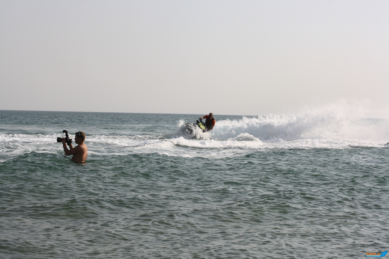 Привет Лёха! Я тут тоже по волнам разошелся... Раз прыгнул - круто, второй сильнее - приземление просто супер! А потом попал на волну так, что гидр взлетел почти вертикально. Перелетая через вторую волну в почти вертикальном положении цепляю ее кормой и резко нос летит вниз, а за волной-то яма...  Получается из почти вертикального положения я падаю в яму, причем нос летит вниз... Успел с реагировать, но удар был такой, что руки не удержали и я встретился лбом с тем-же самым полимерным амортизатором на руле. Больше так бесшабашно не прыгал, но лоб болел... Это конечно не так страшно как у тебя, но пыл немного сбило! А вообще покатушки на море -это классно!!!!! Жаль что вы не смогли поехать!!!! Думаю что в следующий раз Лёня соберет всех! Мне ОООЧЕНЬ понравилось! Поеду еще это точно!!!!!