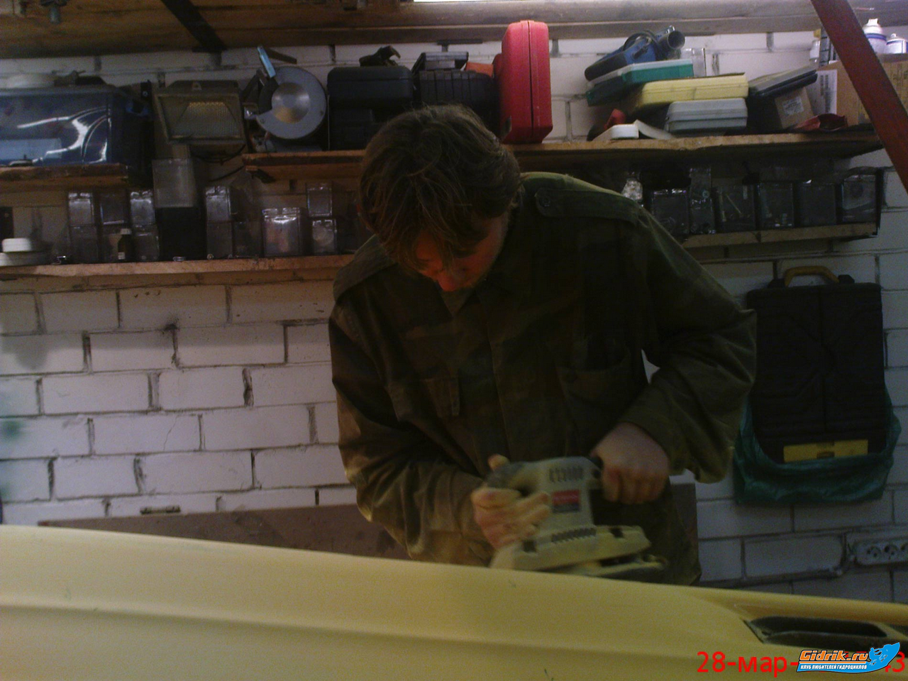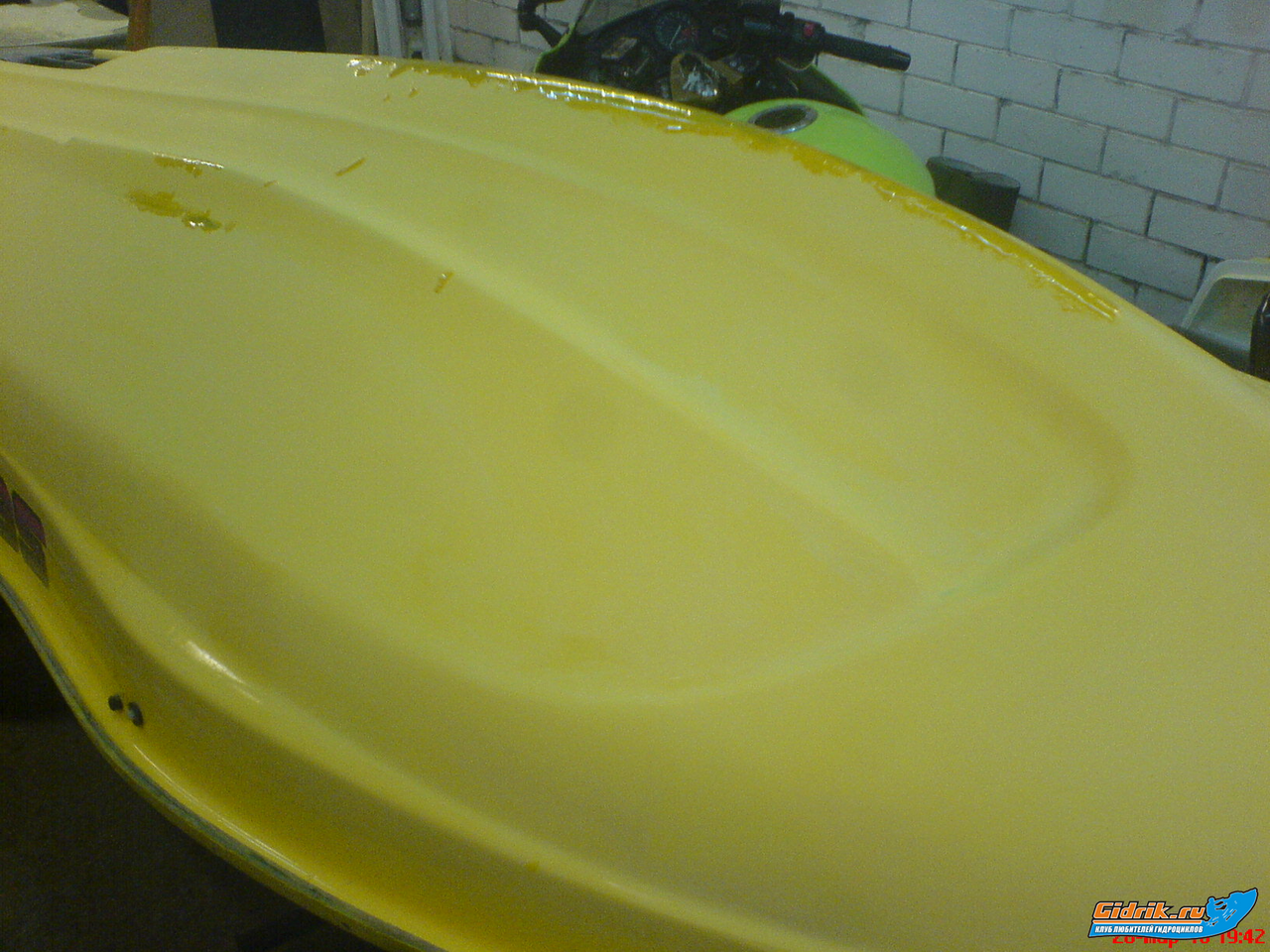Замазал смолой почти все сколы. теперь жду, высыхания... и снова вибромашинкой, останетца в некоторых местах повторно подмазать и зашкурить, обезжирить и красить.....