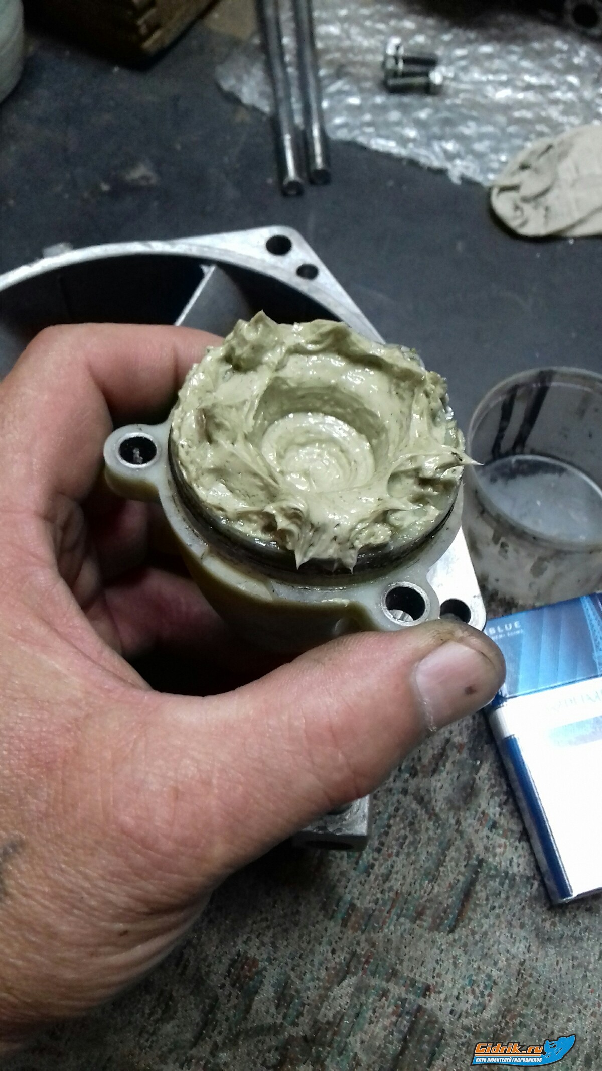 Всем привет! Откатал последние выходные в общем часов 15 с новым жеттингом моторчик координально измениля в +, низ, середина, верх везде самолёт и раскидывать не хотелось. Винт на старте срывается ( прорывался на озёра по ручьям мелковатым ), думал писта винту ан нет всё цело. Ну в общем с 15-ого в отпуску азарт своё взял, раскидал дрыгатель. Водомёт перебрал  сальники wsm поставил, подшипники огонь оставил те же. Не совсем уверен в вине колхозных сальников, рабочая зона на валу пальцемером ощутимо износ но он и был до того. Посмотрим что wsm покажет. Винт перегнул 14/18. Проточил новый блок под свои же sbt, поршня напыл только пошерхаля. Зря выхлоп полировал, решил тунели выхлопа и коллекрора раздвинуть малехо  , коллекто готов, пилю в блоке, прокладка показывает на сколько. Порта выхлопа после расточки в минус ушли - буду правиь на 1мм примерно на сторону еще не считал конкретно.