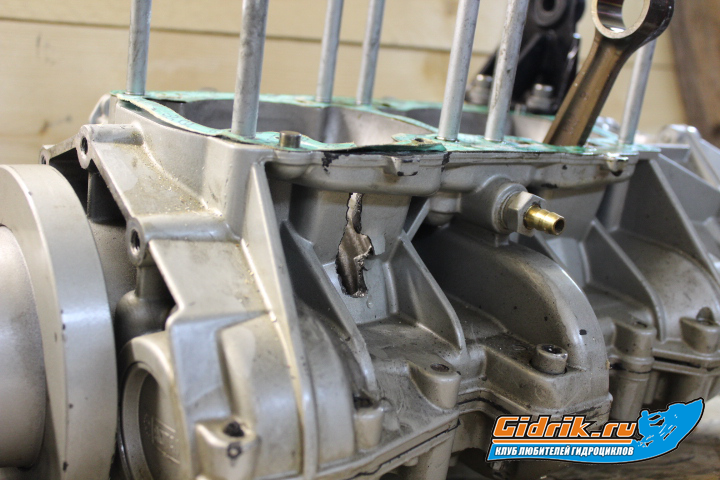 причем тут прихват и плохое масло к дырке в картере? - шатун бы прикипел, а тут он поломан, нижний подшипник цел - не в масле дело...