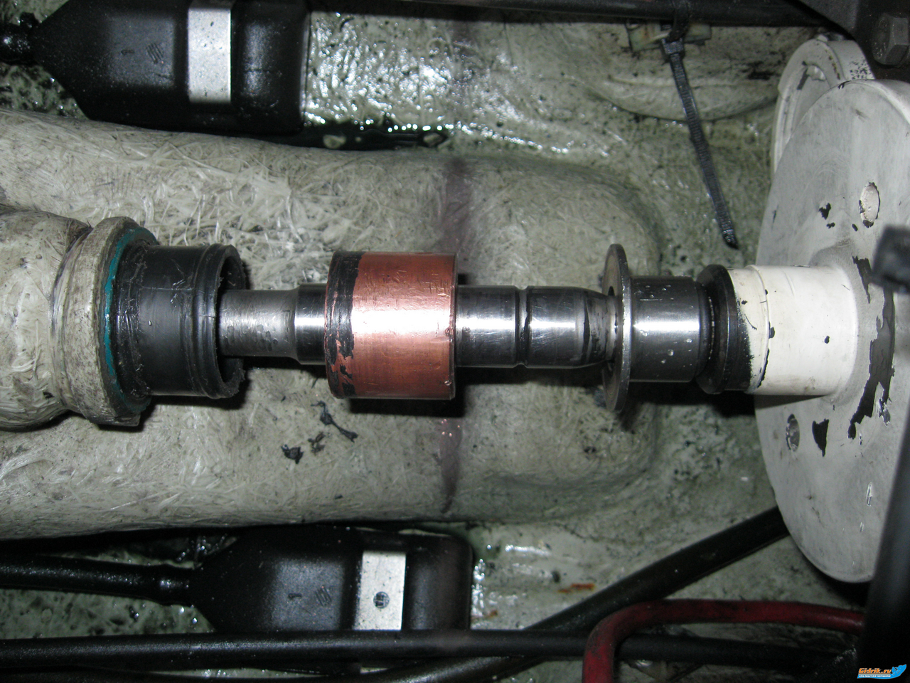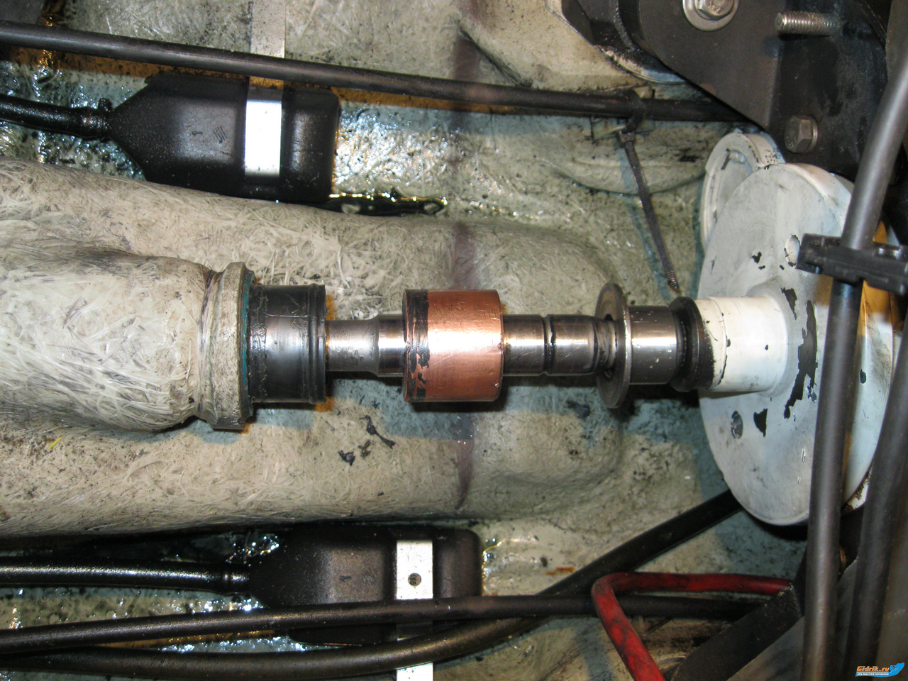 Доброго времени суток всем. у меня возникла следующая проблема: вчера оборвало на карданном валу резинку (пыльник) которая крепится от корпуса к маховику, моментально вода стала прибывать, на берег вытаскивал половина движки было в воде почему разорвало непонятно. Подскажите пожалуйста как снять кардан? снял водомет не выходит, что тогда только движку снимать чтобы эту резинку одеть. Да и по ходу что то у меня там самопалом пахнет. Если есть у кого может схемы как и что должно быть.Фото прилагаю