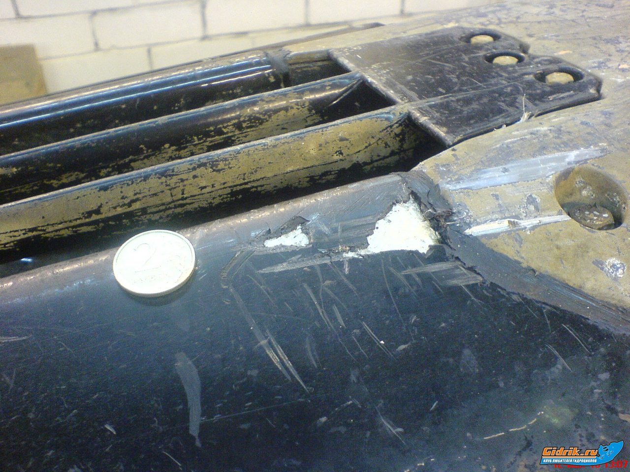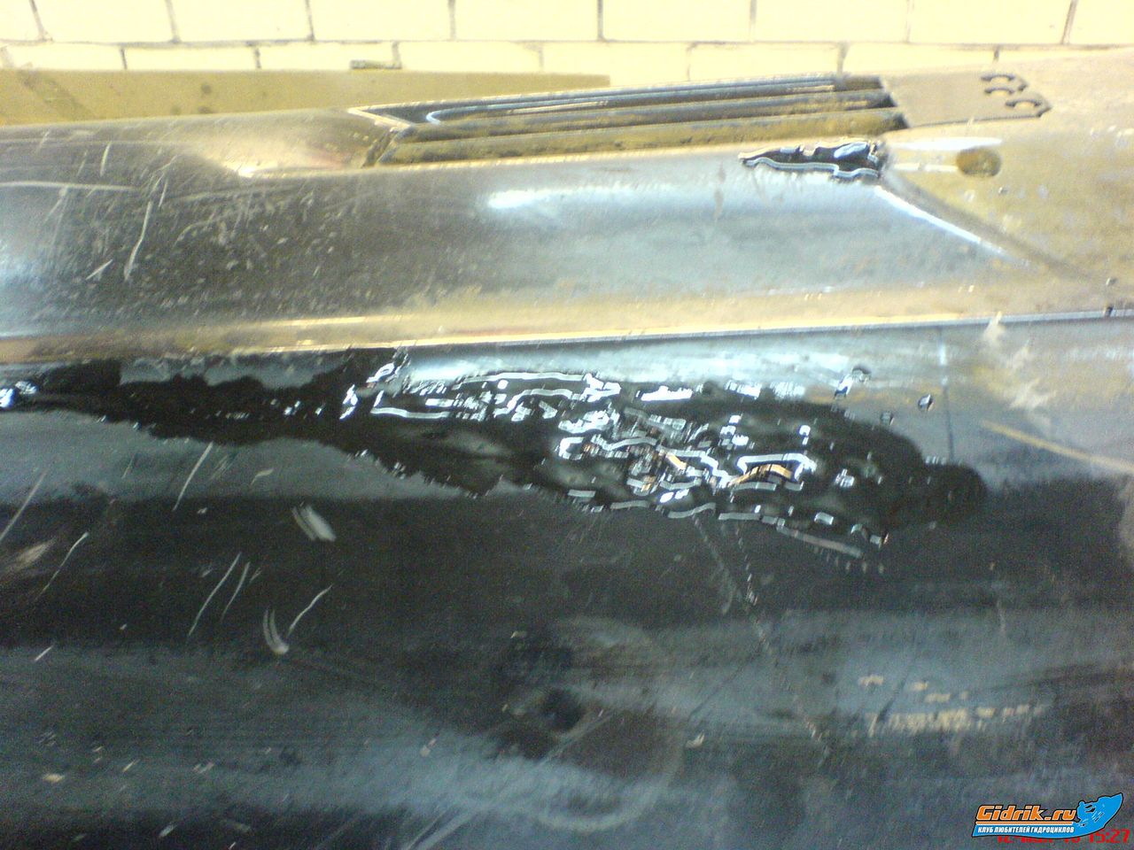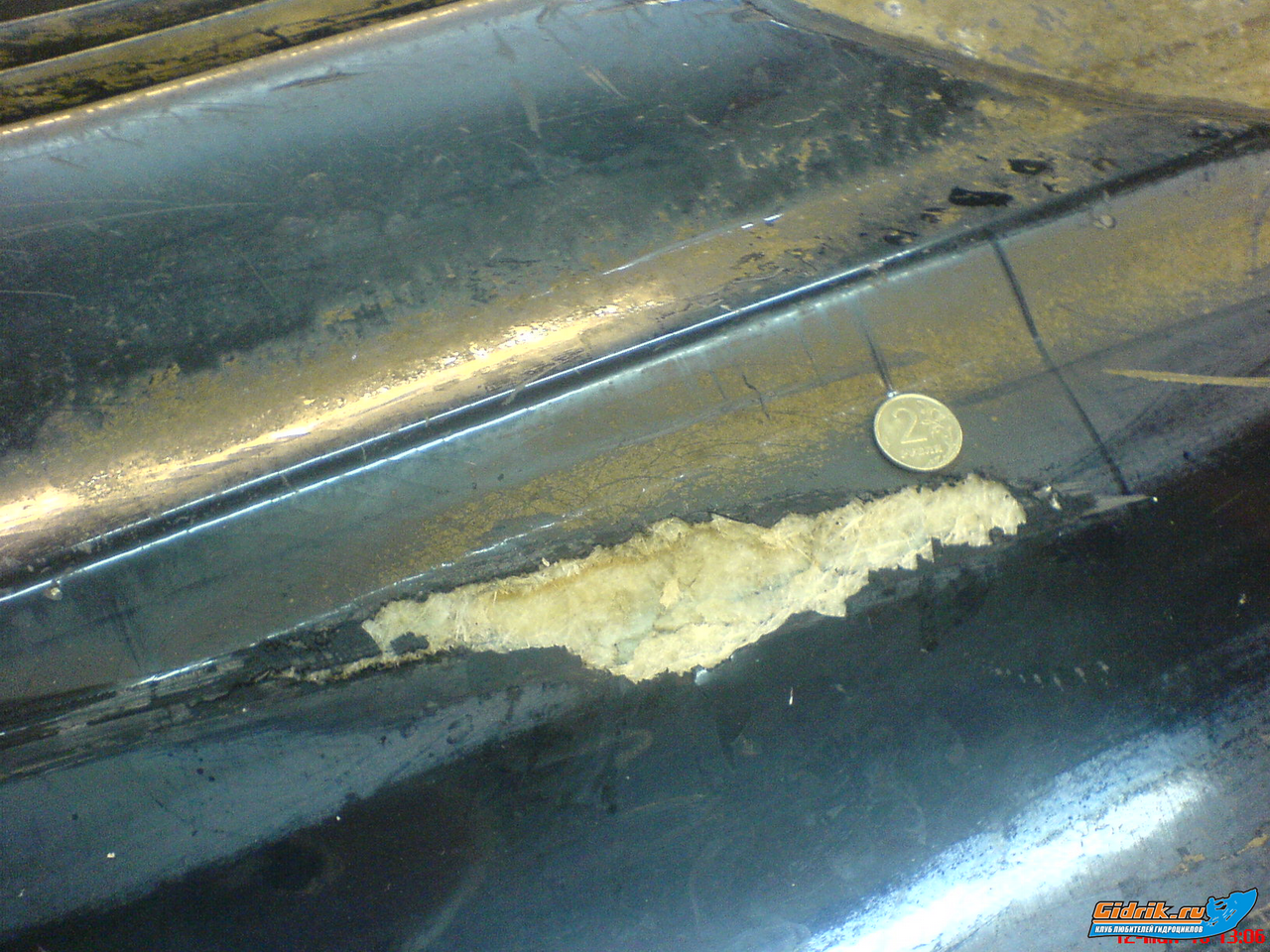 Но водомет не моя задача  Пока они смотрели что к чему.... повернули гидру набок.... узрели дырку в кузове, практически сквозную.... 10х3х0,5см. а может и того более.