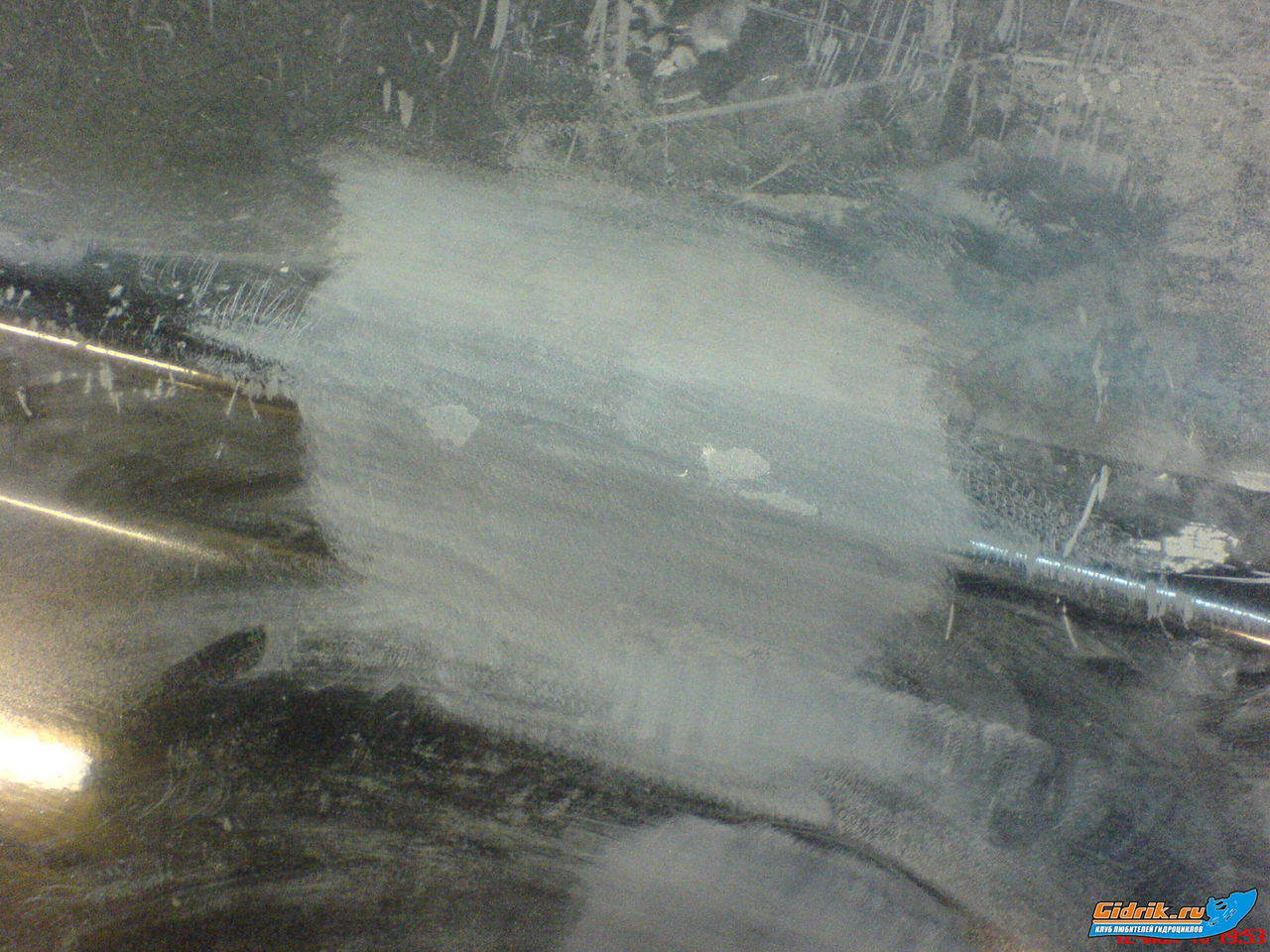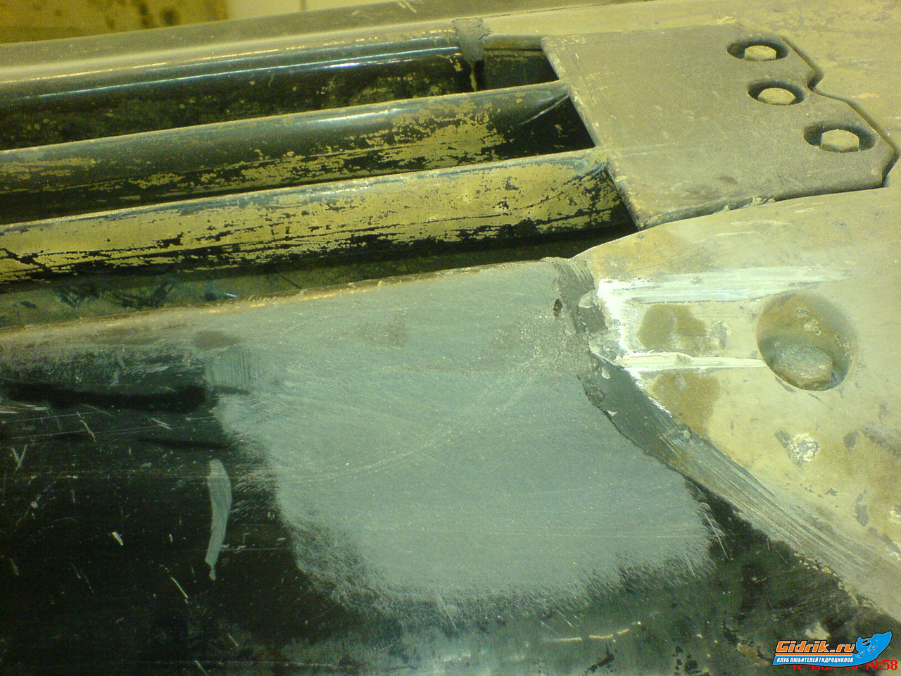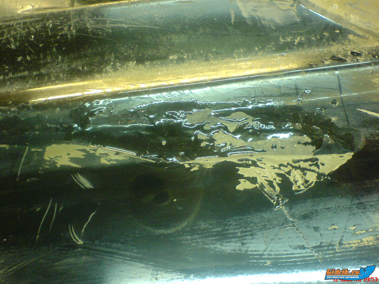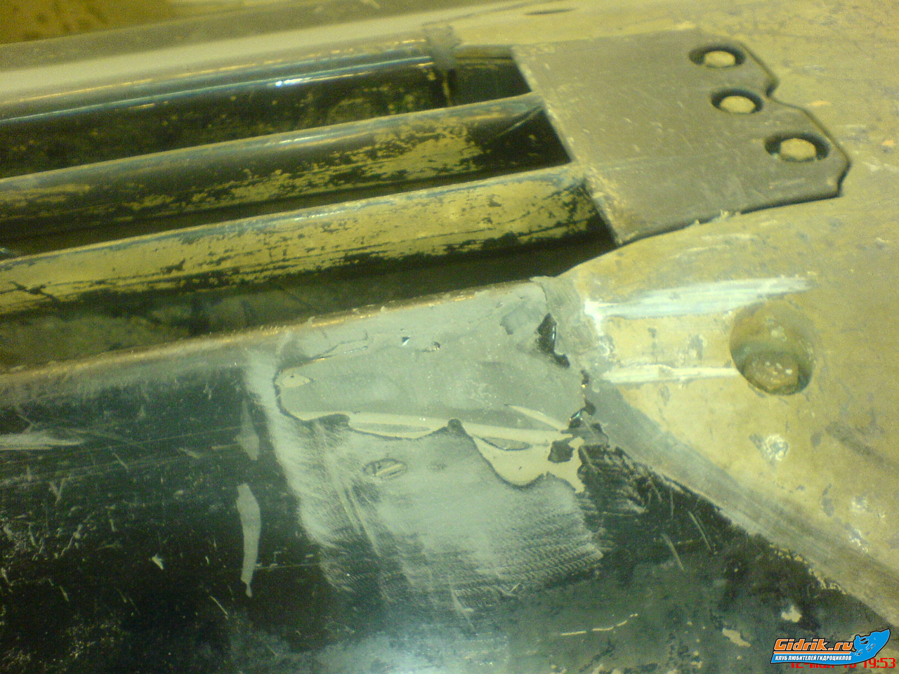 Но водомет не моя задача  Пока они смотрели что к чему.... повернули гидру набок.... узрели дырку в кузове, практически сквозную.... 10х3х0,5см. а может и того более.