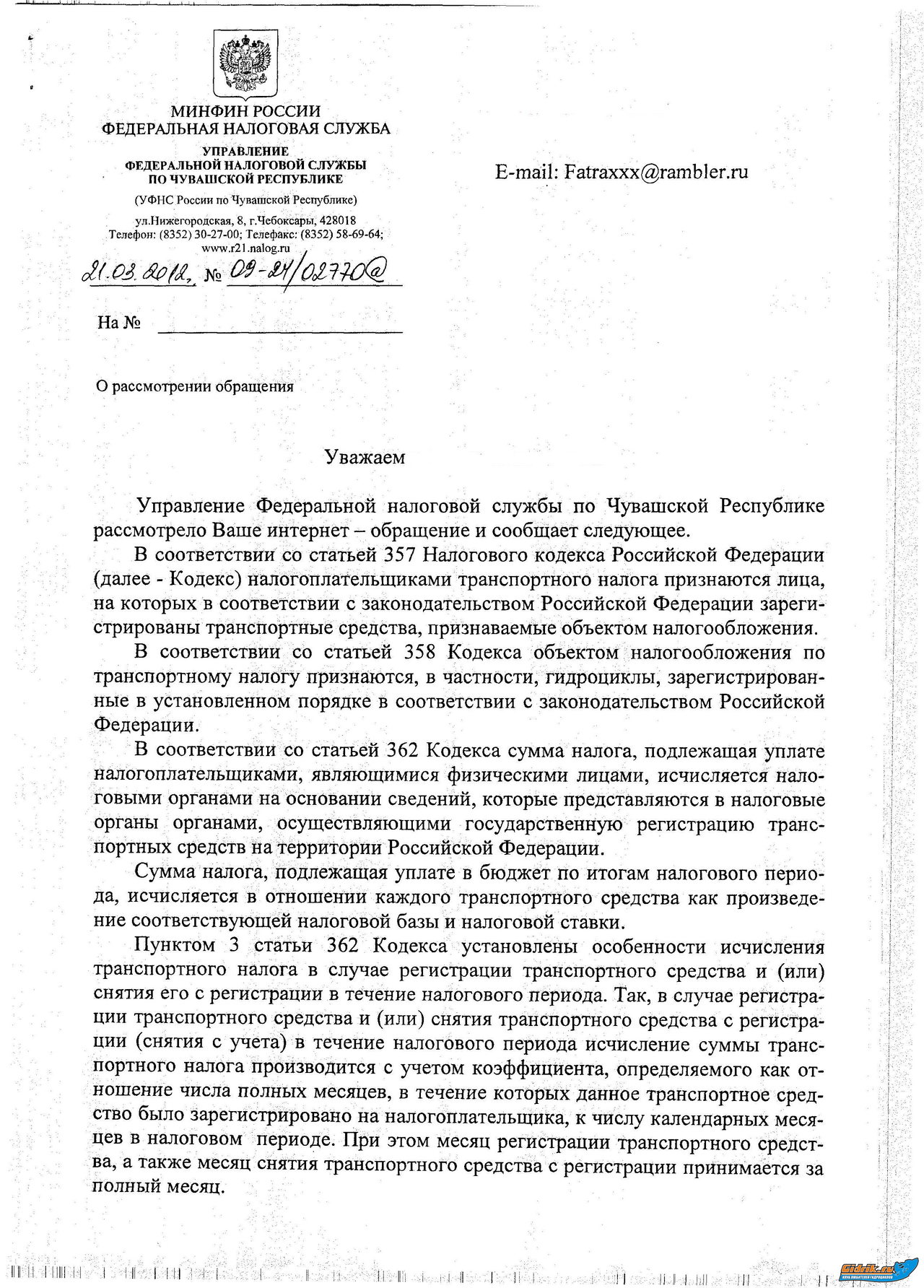 Налоговая ответила писюлькой.
