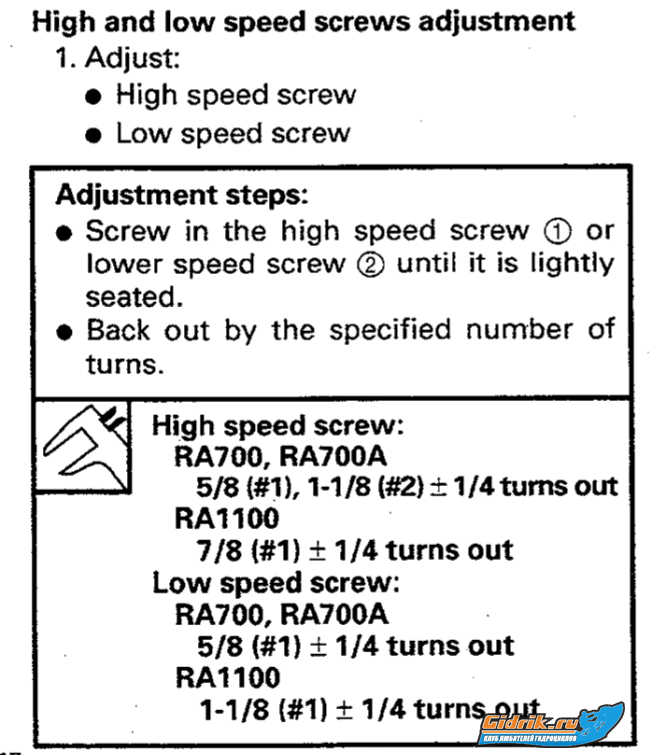(Вроде всё на русском), но не могу понять на сколько надо выкрутить винты Н И L ? Не мужики, всяко было, и баллоны качали и нипеля меняли  но что-б русский на русский переводить  Женя раздели 1 оборот на 8 частей, винт H выкрути от упор на семь восьмых 7/8частей. Винт L на один оборот и одну восьмую часть на всех карбах. Подстройка качества смеси по цвету свечей, раздели оборот на четыре части и крути туда, сюда по 1/4 от заведомо выкрученых винтов)). Первым в работу вступает винт L.