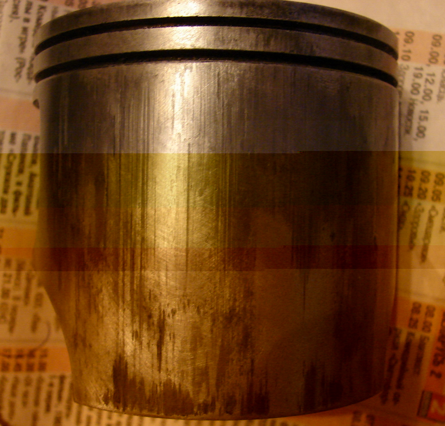 на верхнем поршне - залысина - похоже на след небольшого прихвата, надо разобраться почему... с какой стороны это (со стороны выхлопа или со стороны впуска?) вот эту залысину и можно чуток тирануть...