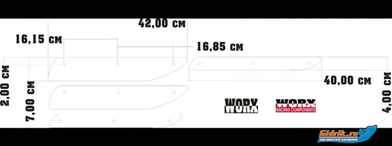 та хоть элерон, хоть звезда, похрену... тебе ее целиком фоткать и не надо, я ж не дебил, чтоб о таком просить, ее с любой фотки в инете срисовать элементарно. заходишь с жопы, приставляешь камеру к краю кормы и фоткаешь, чтоб как на рисунке, нужен только угол спонсона относительно кормы в собраном состоянии. зная точный размер хоть одного элемента на фото (монету приложи или коробку спичек), можно рассчитать размер чего угодно на этом фото с большой точностью и все углы, градусы и закругления тоже. спонсоны не гавно, а вот цена им 1000р. в базарный день, но все желающие могут купить этот наноприбор и за 300 уе. и думать, что надпись воркс увезет их в нирвану... денег стоит только их разработка, изготовление - копеечное, чем я и воспользовался вот мои, я сознательно немного изменил передний и задний угол, так эстетичнее, а рабочая площадь та же.