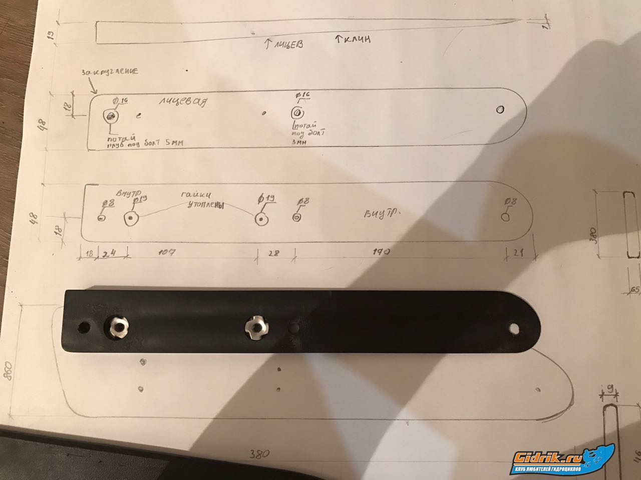 Блин, да посмотрите на фото! внутренняя пластина (распорка) это не прямоугольная планка, как вы ее изобразили, она имеет форму эйлерона, как я ее сфотаю на собранном спонсоне??? Хотите делать поделку непонятную, внешнюю пластину могу сфотать без проблем, только толку то, потом будете тереть, что спонсоны говно, надо сток ставить