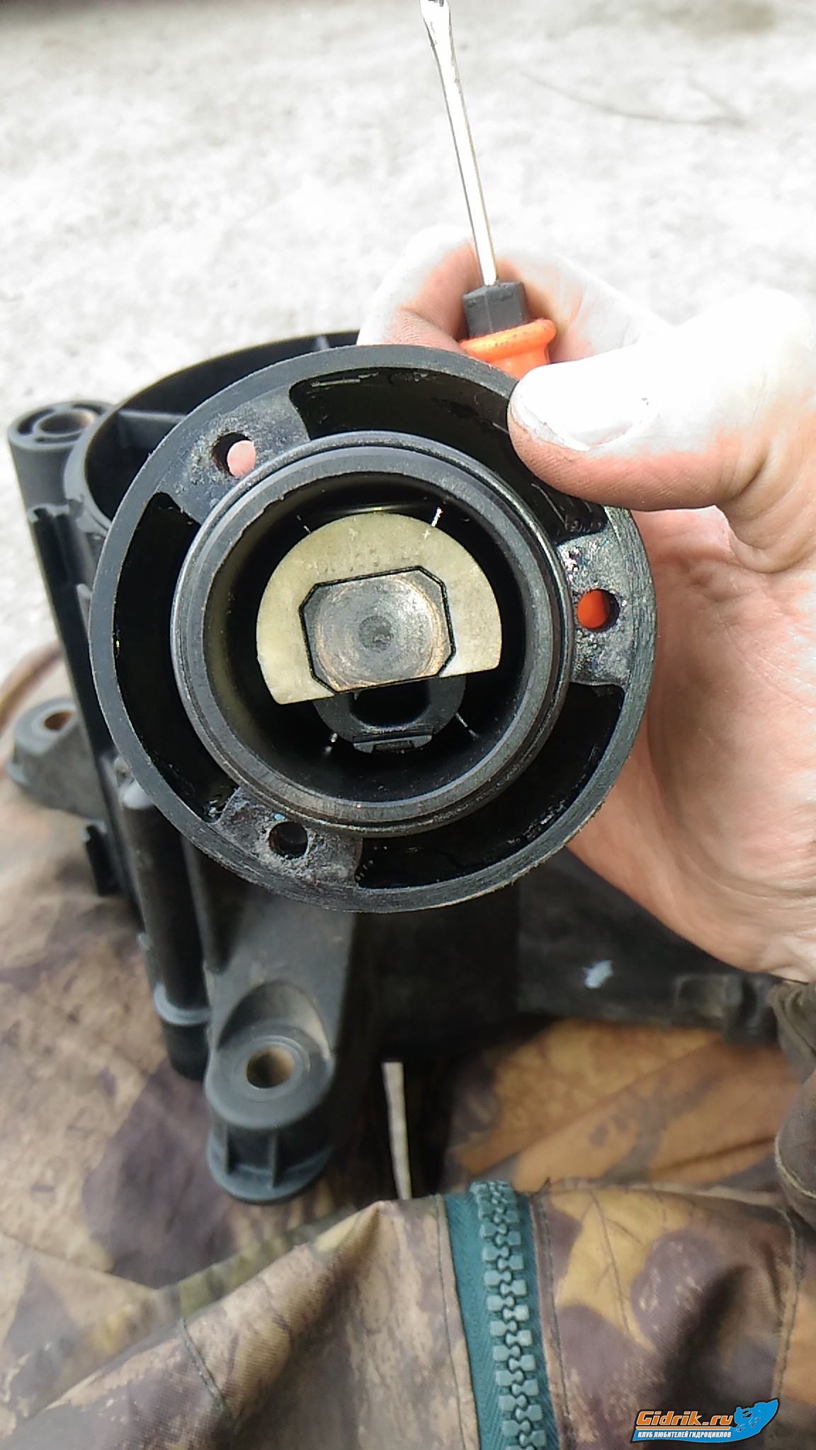 bandit96 писал(а): Блин не могу одеть конус, вернее устанавливаю в таком положении, как на фото, надавливаю на усик через заливное отверстие и прикручиваю все, винт вращается очень тяжело, значит делаю что то не так  там по другому не сделаешь.просто эта система хорошо валик прижимает.но не большой люфтик вперед -назад должен быть.и внимателнее с резинкой на конусе,часто закусывает.не заметил-масло выбежит водомету каюк.мелочей не бывает.ставить естественно с открытой заливной пробкой.