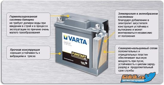 Sklez писал(а): Не знаю, может сейчас глупость напишу. Купил прошлым летом свой первый Гидрик, и в нем Уже стоял гелевый АКБ, как в бесперибойниках. На 18 а/ч. На нем Гидрик заводился с пол пинка. После почитал, что данный тип акб может работать в любом положении, и не так сильно боиться встряски как обычный щелочной. Появилась оказия, и с работы пример точно такой же, новый АКБ. В следующем сезоне, буду с резервом. Выше сказанное, это лично моё мнение, и на эталон не претендует. P.s. когда на моём авто, начал умирать АКБ, пока тянул до зарплаты, много раз 'прикуривался' от данного АКБ, мощности хватало.  А потом со временем стартер,реле стартера