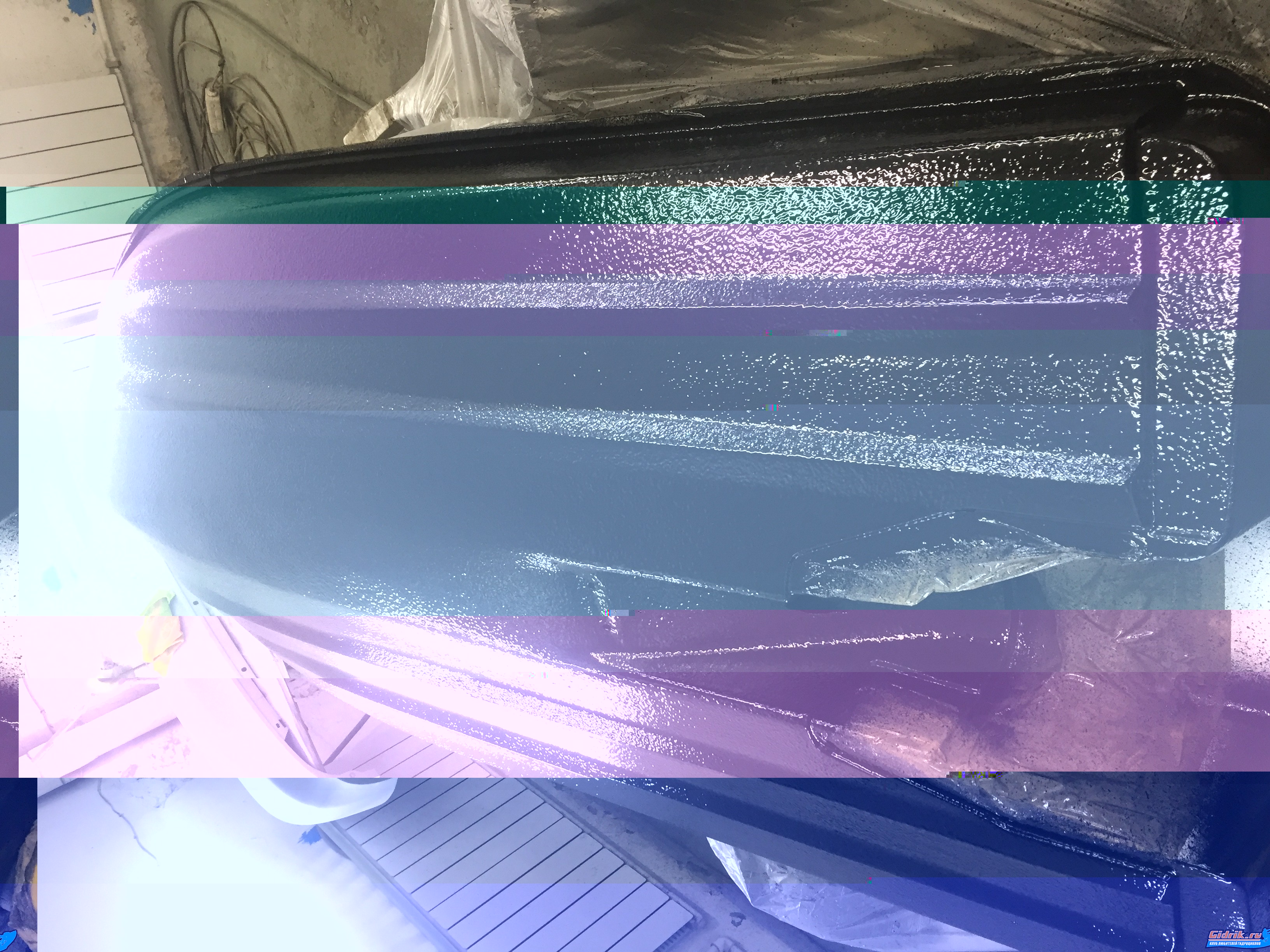 Готово! Ждём полимеризацию , за тем нужно обработать, грунт для адгезии хорошей, и красим дно)))