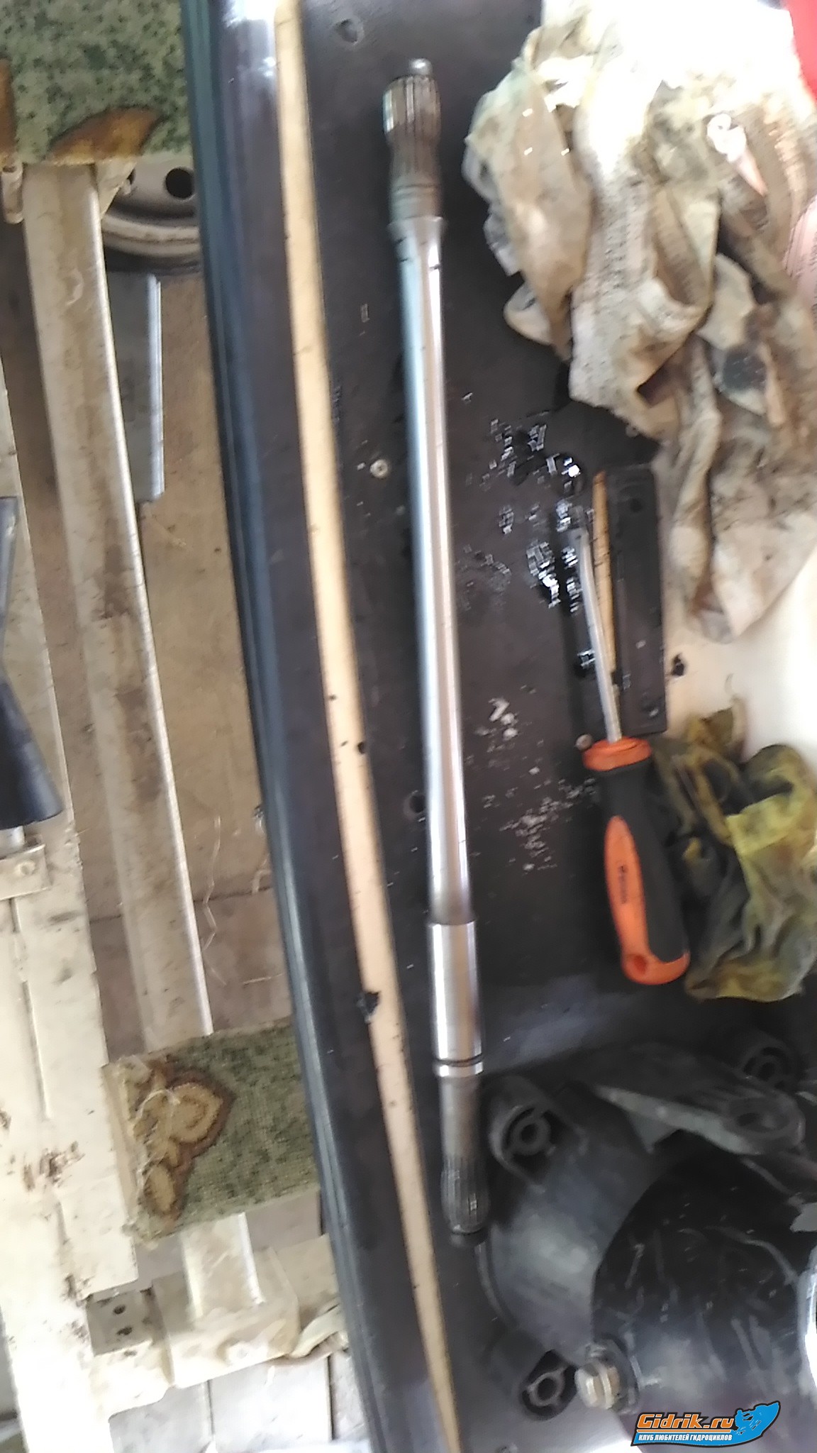 Спрямляющие на удивление слегка покоцало.Кольцо однозначно под замену,создай тему в разделе куплю запчасти ,,куплю кольцо водомета 140мм,, те кто занимается продажей запчастей сами напишут.Зажимаешь валик в тиски за губки которые на фото,импеллер откручиваешь ,,заводилкой мотоцикла,, ключа естественно у тебя нет,как и у меня,приходится так выходить из положения.Доставай валик и смотри внимательно на предмет раковин,состояние подшипников