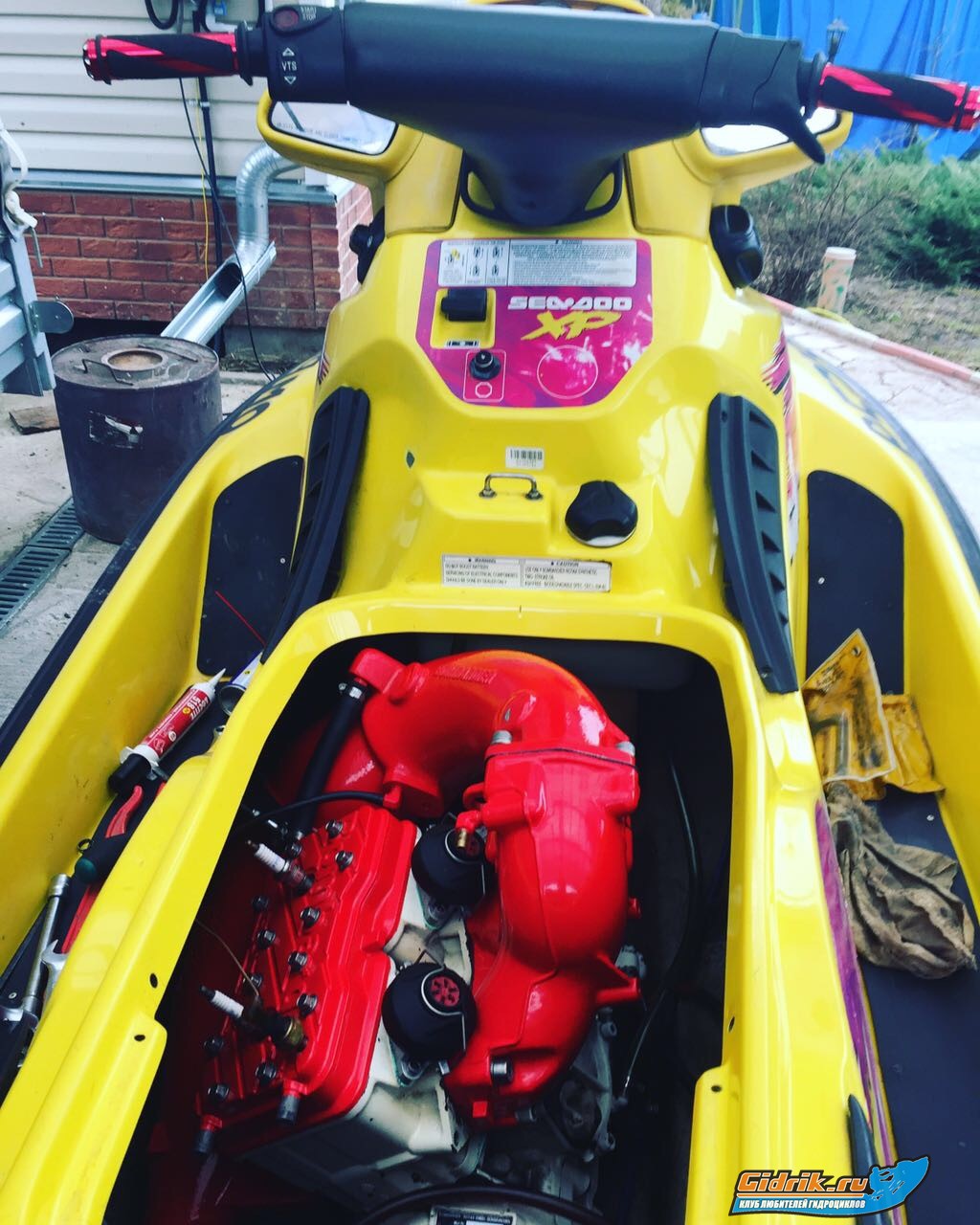 Решил выложить историю своего гидрика. BRP XP 96 г.в. с моторчиком 787. Приобрел его у знакомого в неисправном состоянии. По его словам нужно было только поменять поршень на одном из цилиндров. Был подсос через прокладку головки блока, поршень сгорел. Простыми путями мы не идем и я решил все же вынуть и разобрать движек. Слава богу что я так сделал! Нет, ничего прям сверх криминального там не было. Но промывка КШМ и картера была обязательна. В общем движечек за зиму был перебран и заодно приобрел обновленный вид. Пришла пора заняться и корпусом. Днище было в ужасном состоянии! Нашел на просторах интернета людей занимающихся покраской пластиковых лодок и отдал им на ремонт. Если кому будет интересно дам контакты, находятся они в Мытищах. Делают на совесть, огромная им благодарность! Ниже будет история в картинках.