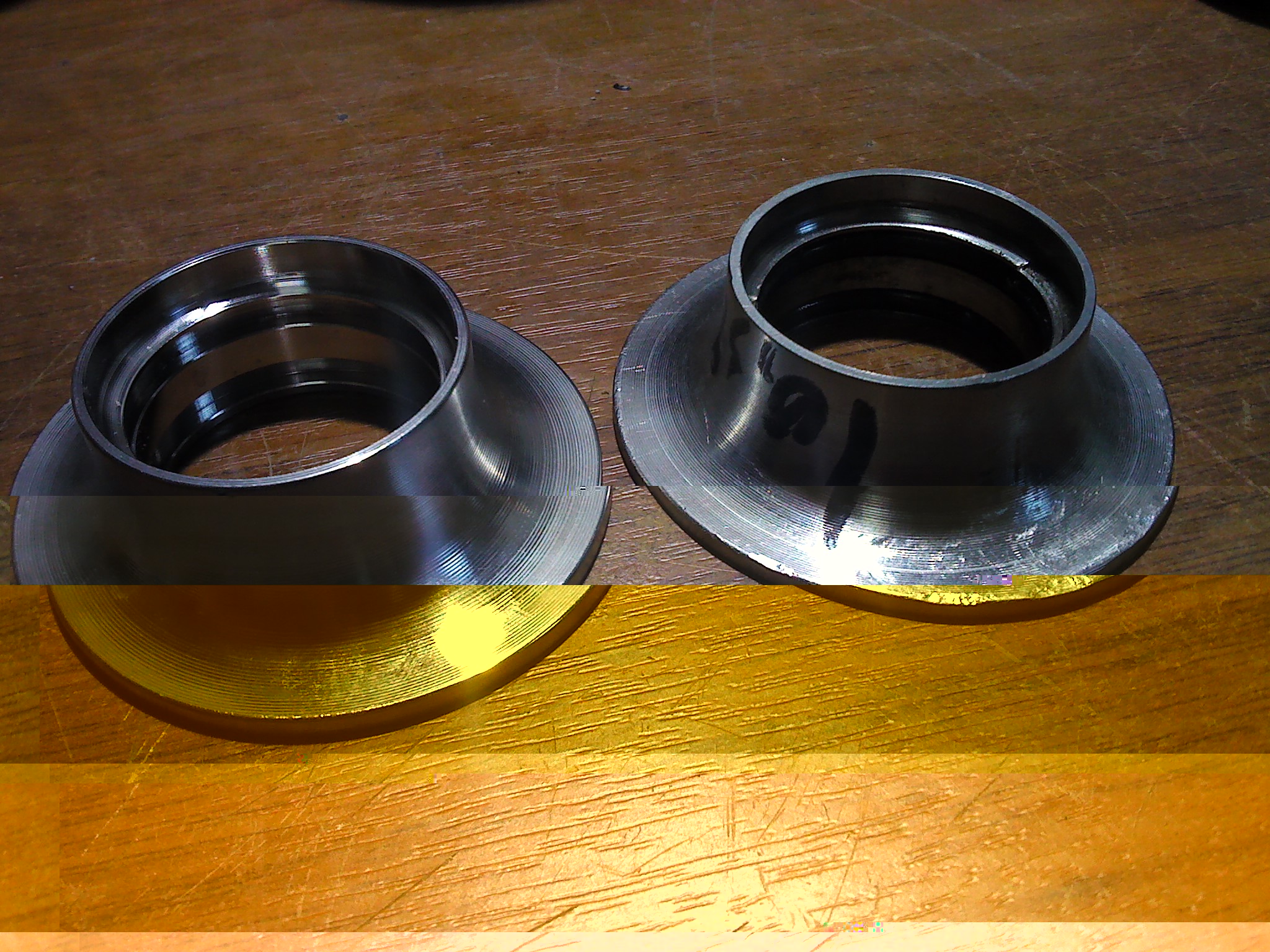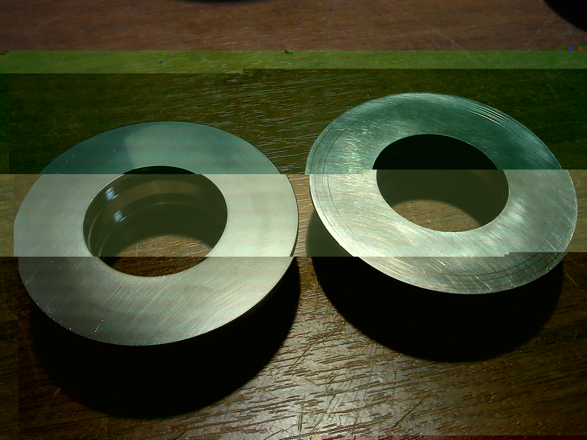 Для примера новая чашка и старая после шлифовки и притирки, на центре чашки следы шабрения от камня на шлифовальном станке, однако это не рабочая зона и тупо влом было их на 0 затирать.... радиальные следы от интикатора, только видимое, фактически их нет.