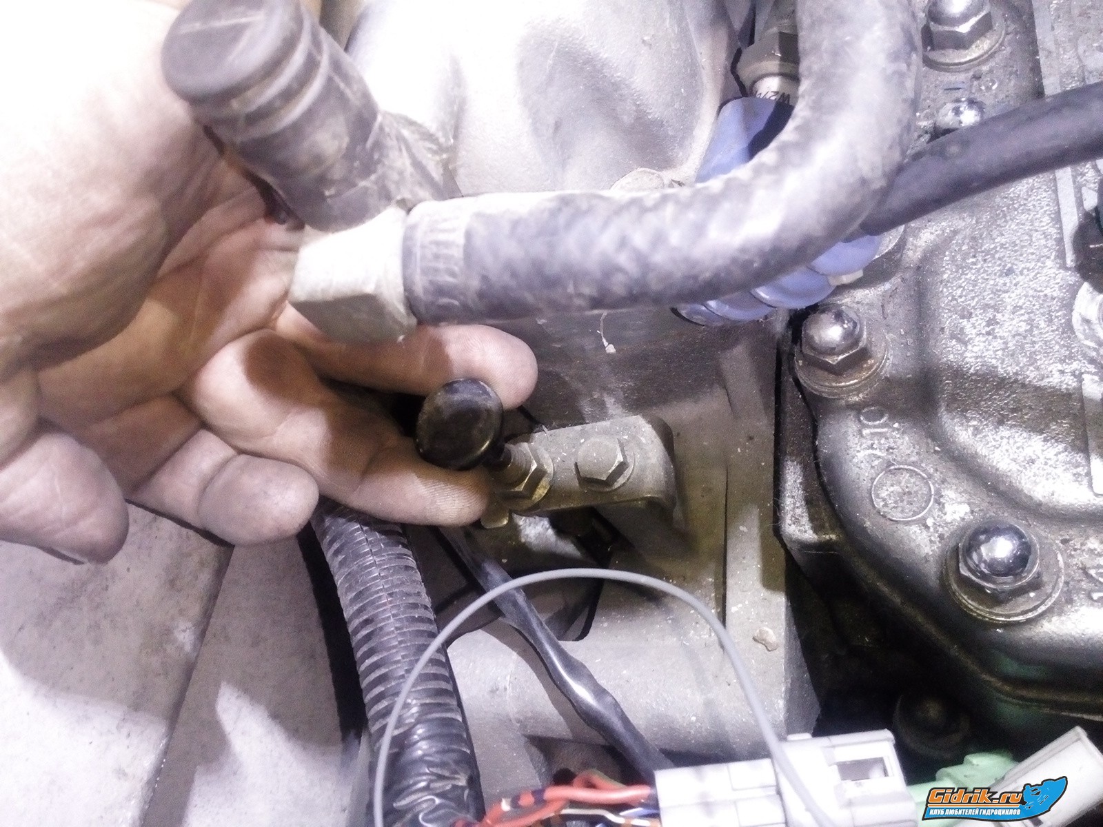 Верхняя резиновая заглушка возле троса для промывки системы пресной водой,это если в морской эксплуатируется.Кстати, через нее на зиму неплохо бы и антифризом систему охлаждения прогнать.Как промывать на форуме есть инфа.