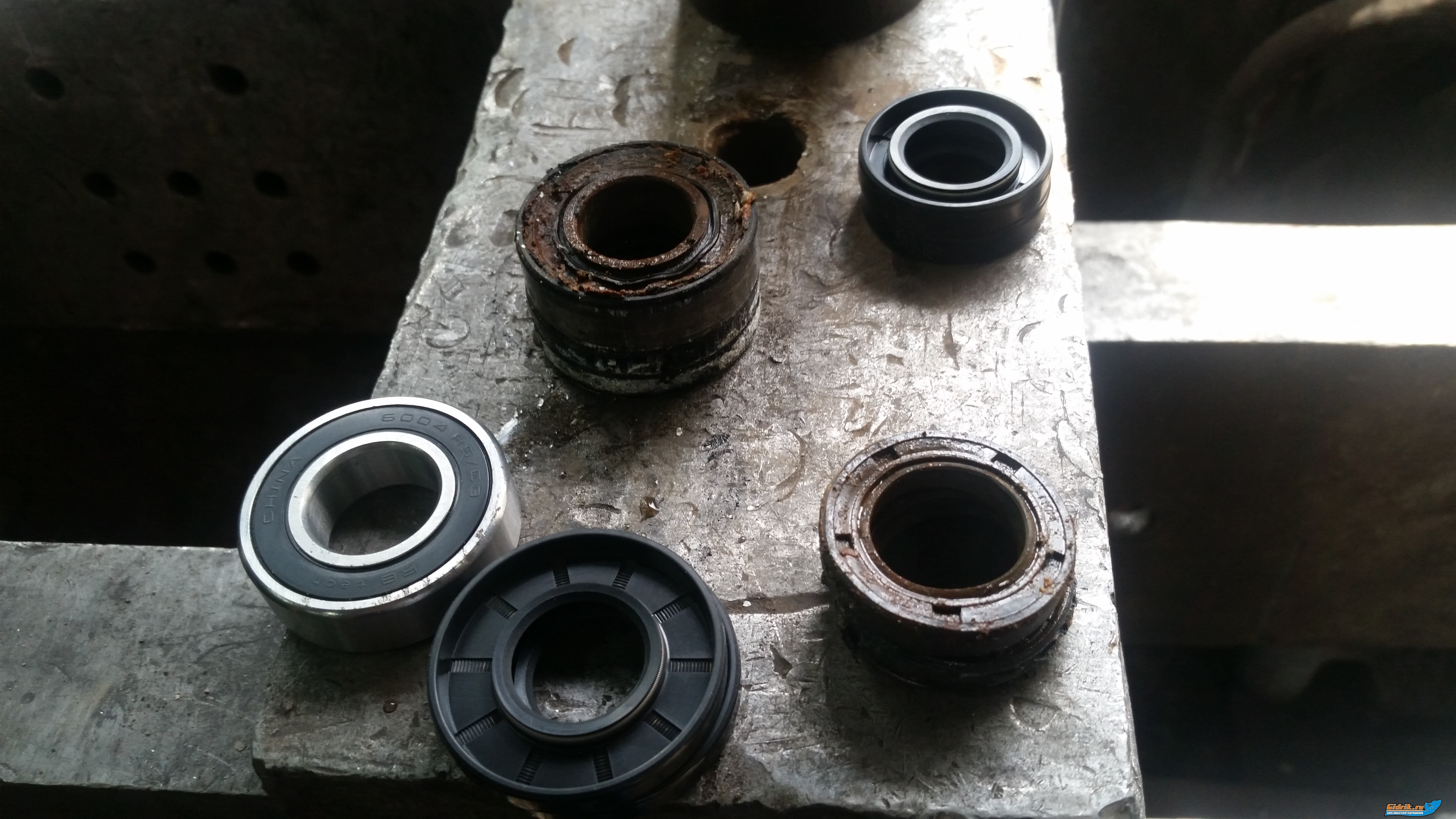 И еще как снять сам подшипник из этого корпуса. ? Только прессом? А сальники... или постучать. ?