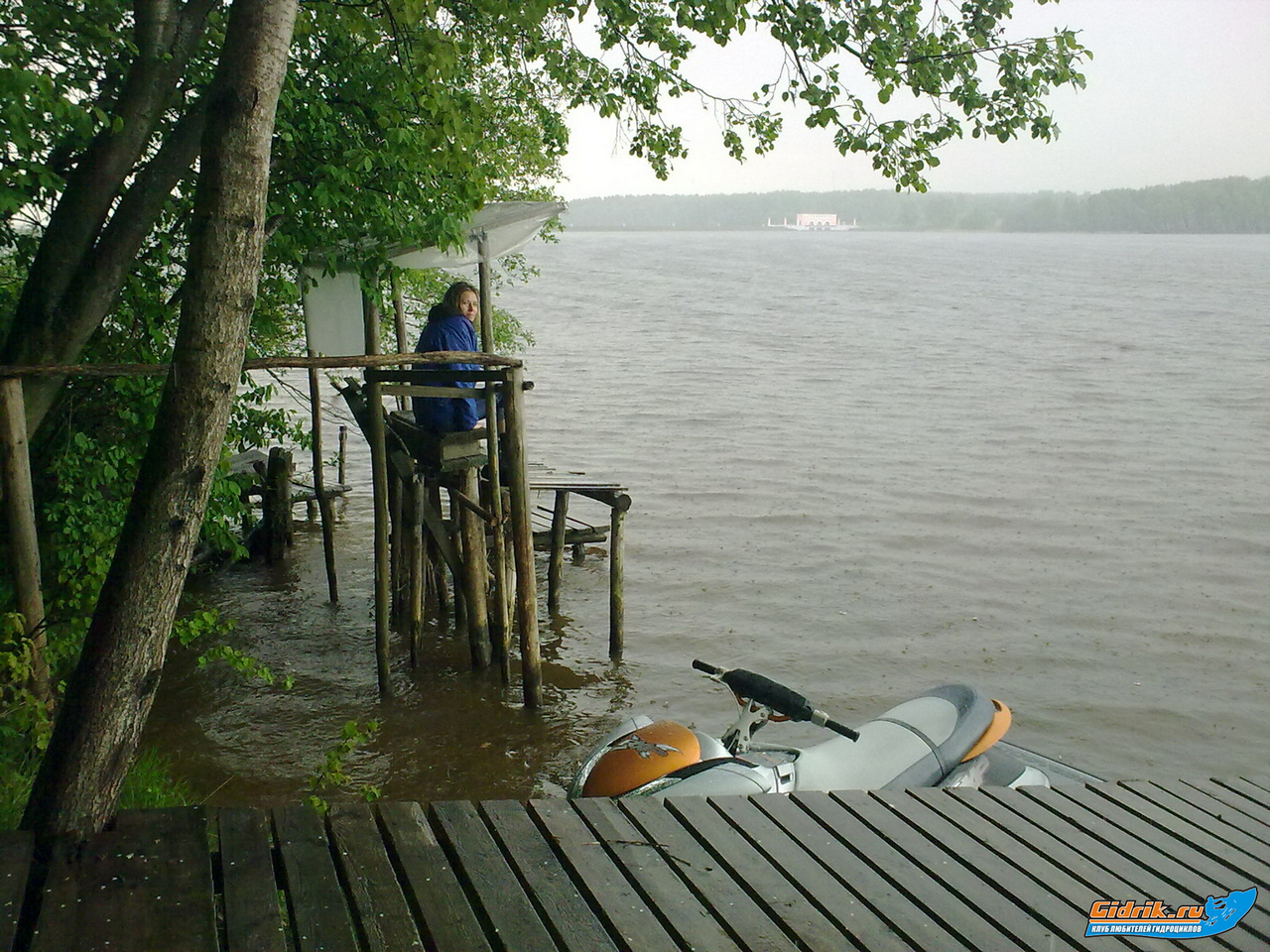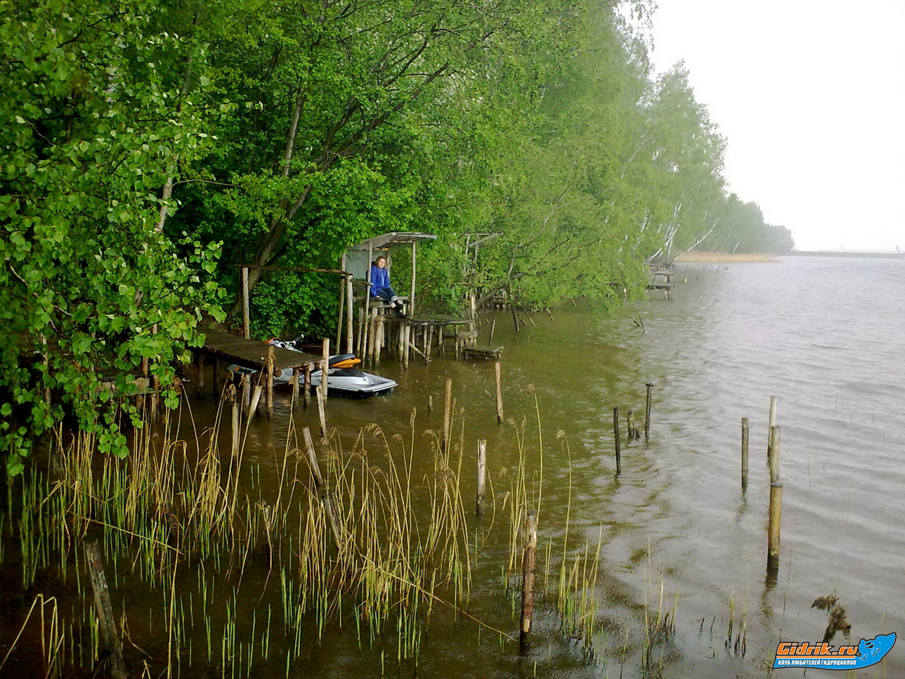 Вчера , с Натуликом, ездили на Пестовское водохранилище, испытывали гидрик, после устранения неисправности. Попали под дождь. Когда начался сильный ливень, пришлось найти убежище на ближайшем берегу, т.к. до машины, катить долго.