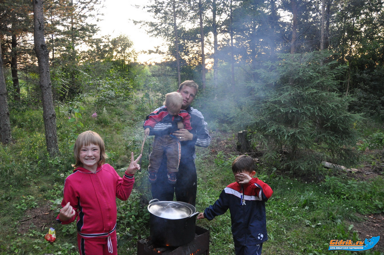 2-мя машинами и 2-мя семьями сняли коттедж прямо на Селигере. С банькой и т.д.