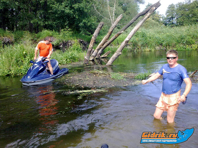 глубина в редких местах до 6 метров, а в основоном 2-3метра и по колено :)... В одном месте на всей скорости пришлось прескочить мель... Славо Богу был песок и мы безболезненно продолжили движение. Но за то около 10 км река шла по лесу и там были завал на завале..! Все фотки на телефон сделаны, недогадались взять фотик..! Бывает..! Теперь исправимся..!